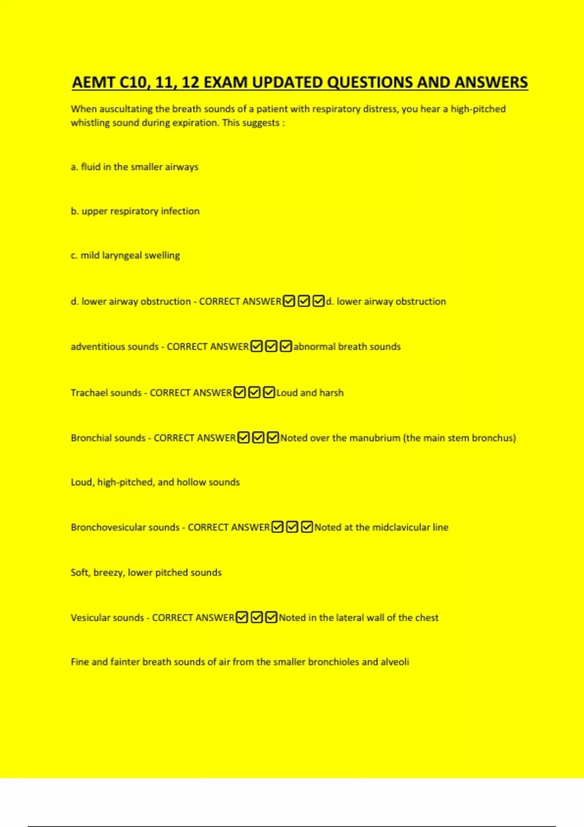 d. lower airway obstruction - CORRECT ANSWER✅✅✅d. lower airway obstruction