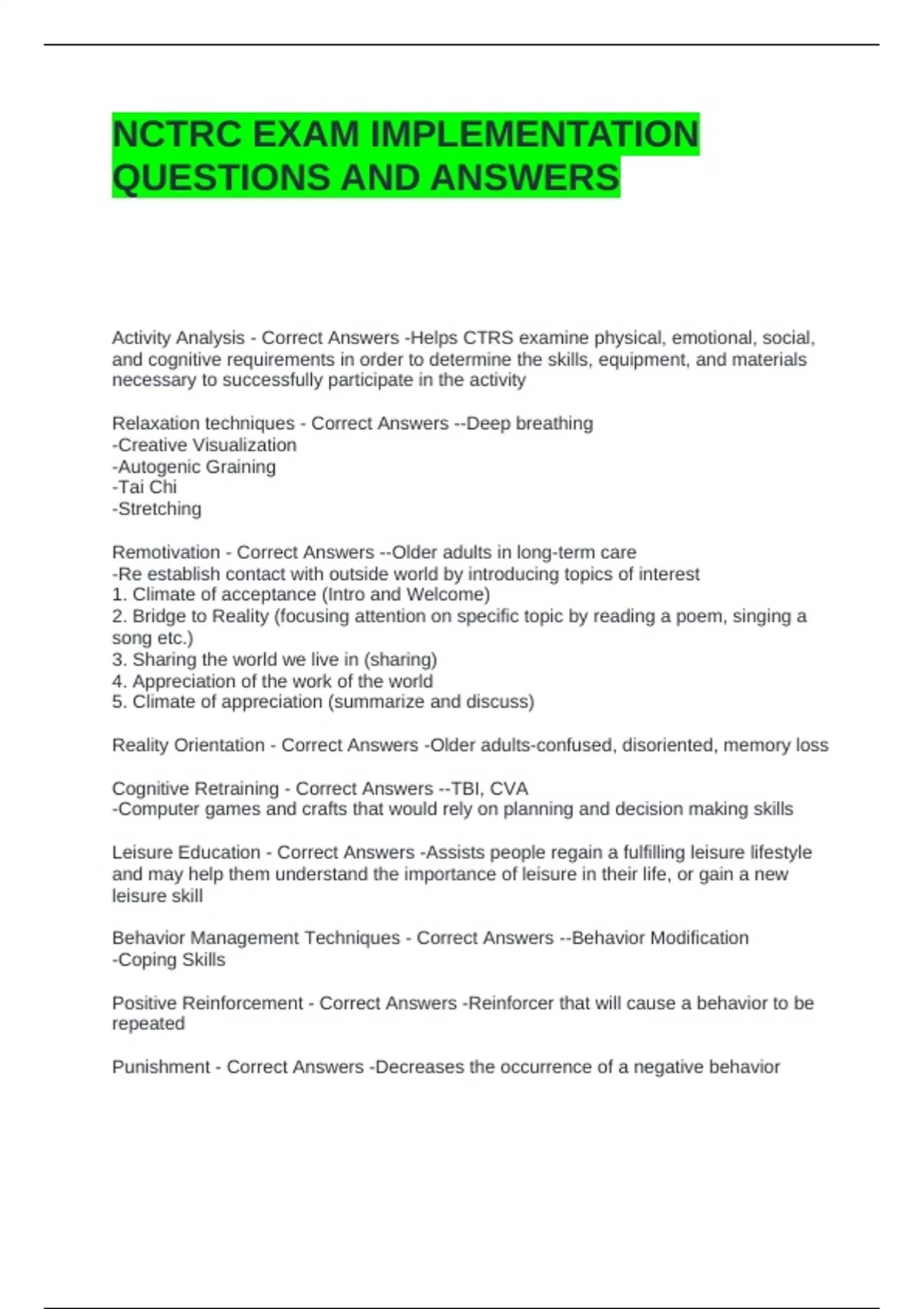 Leisure Education - Correct Answers -Assists people regain a fulfilling leisure lifestyle