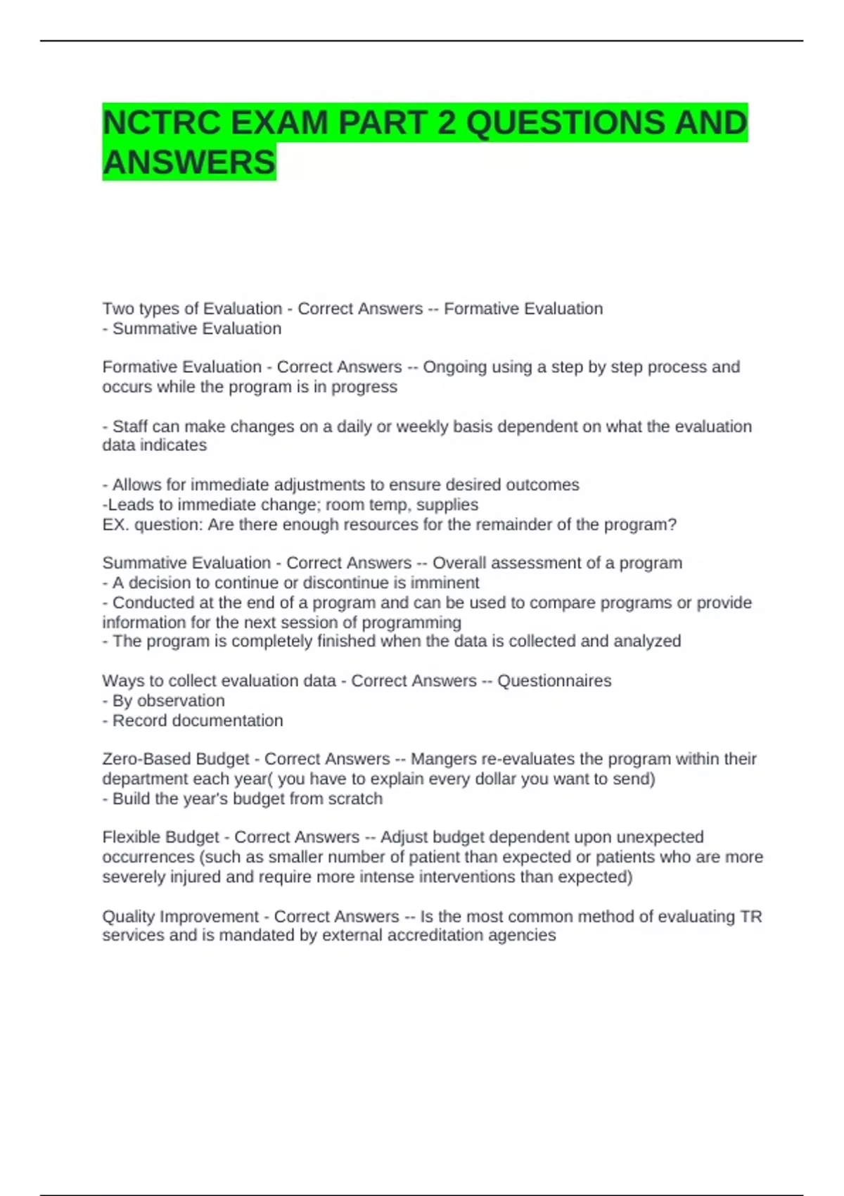 NCTRC EXAM PART 2 QUESTIONS AND ANSWERS