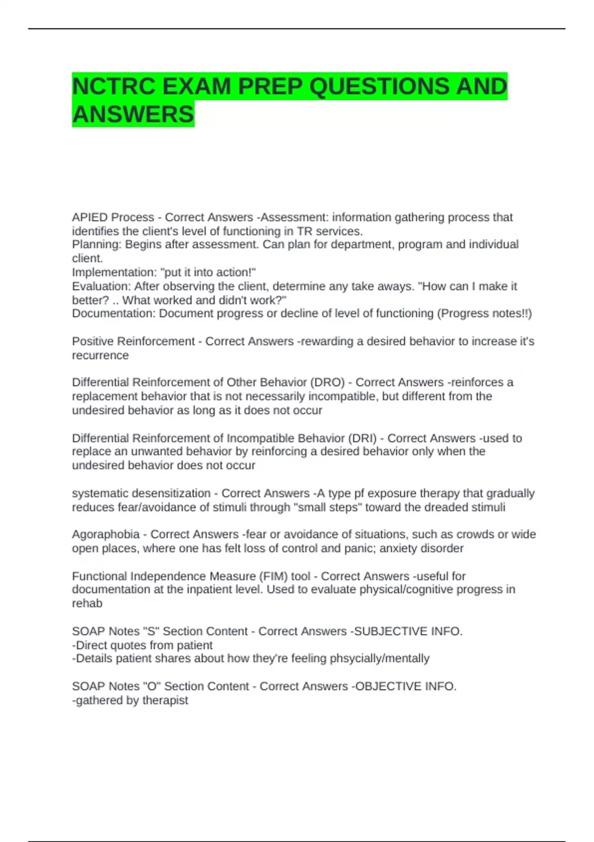 NCTRC EXAM PREP QUESTIONS AND ANSWERS