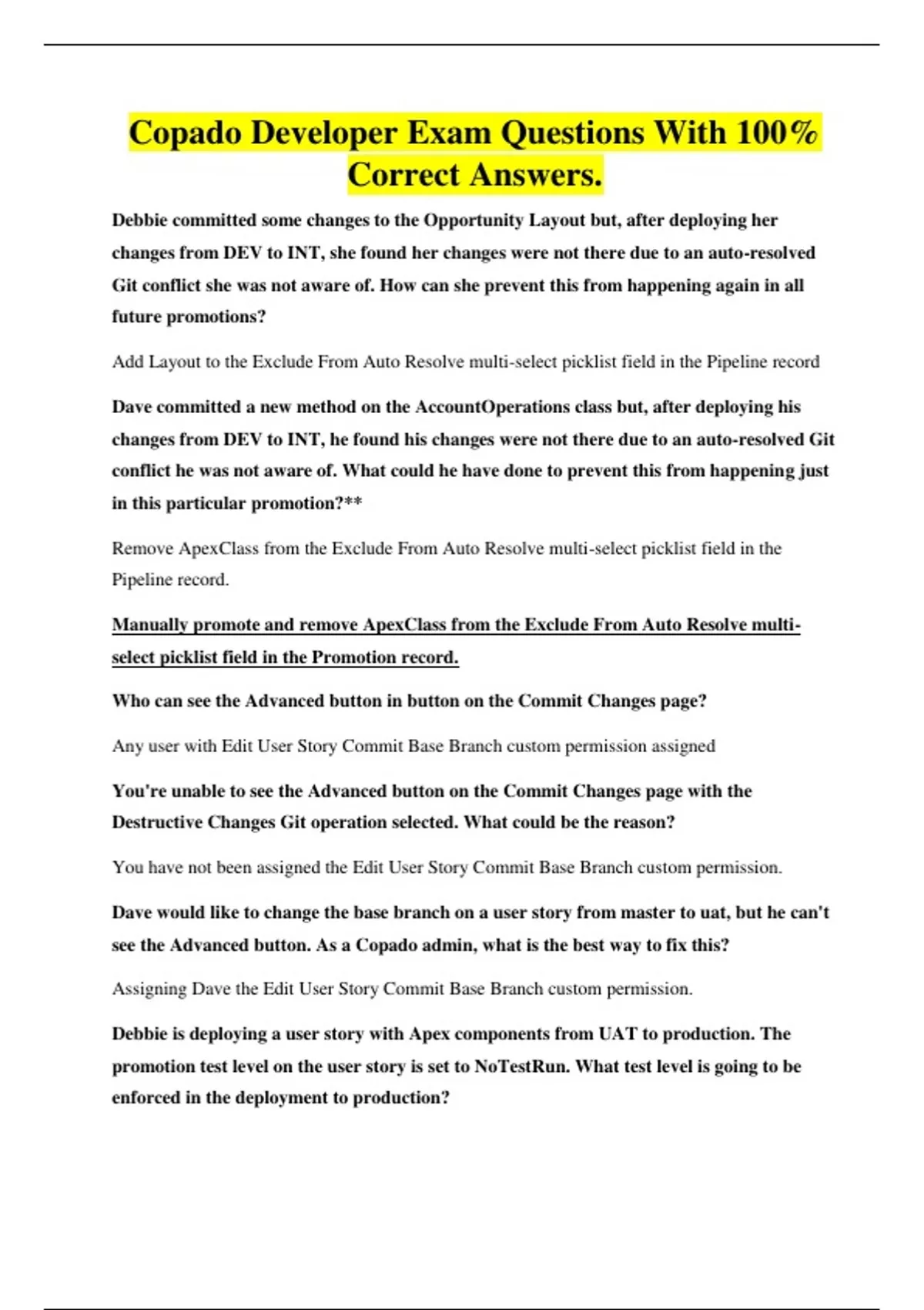 Copado Developer Exam Questions With 100%
