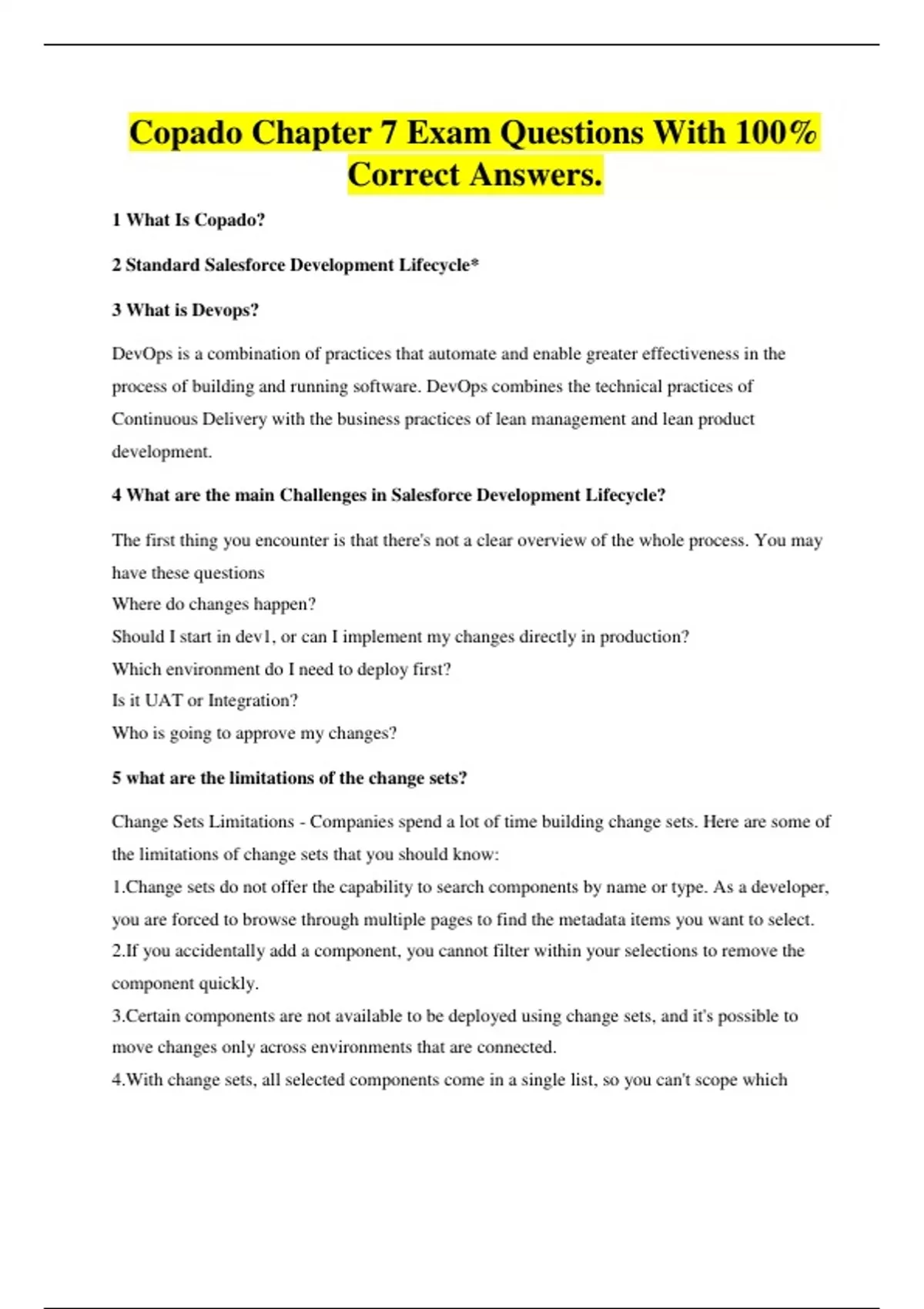 Copado Chapter 7 Exam Questions With 100%