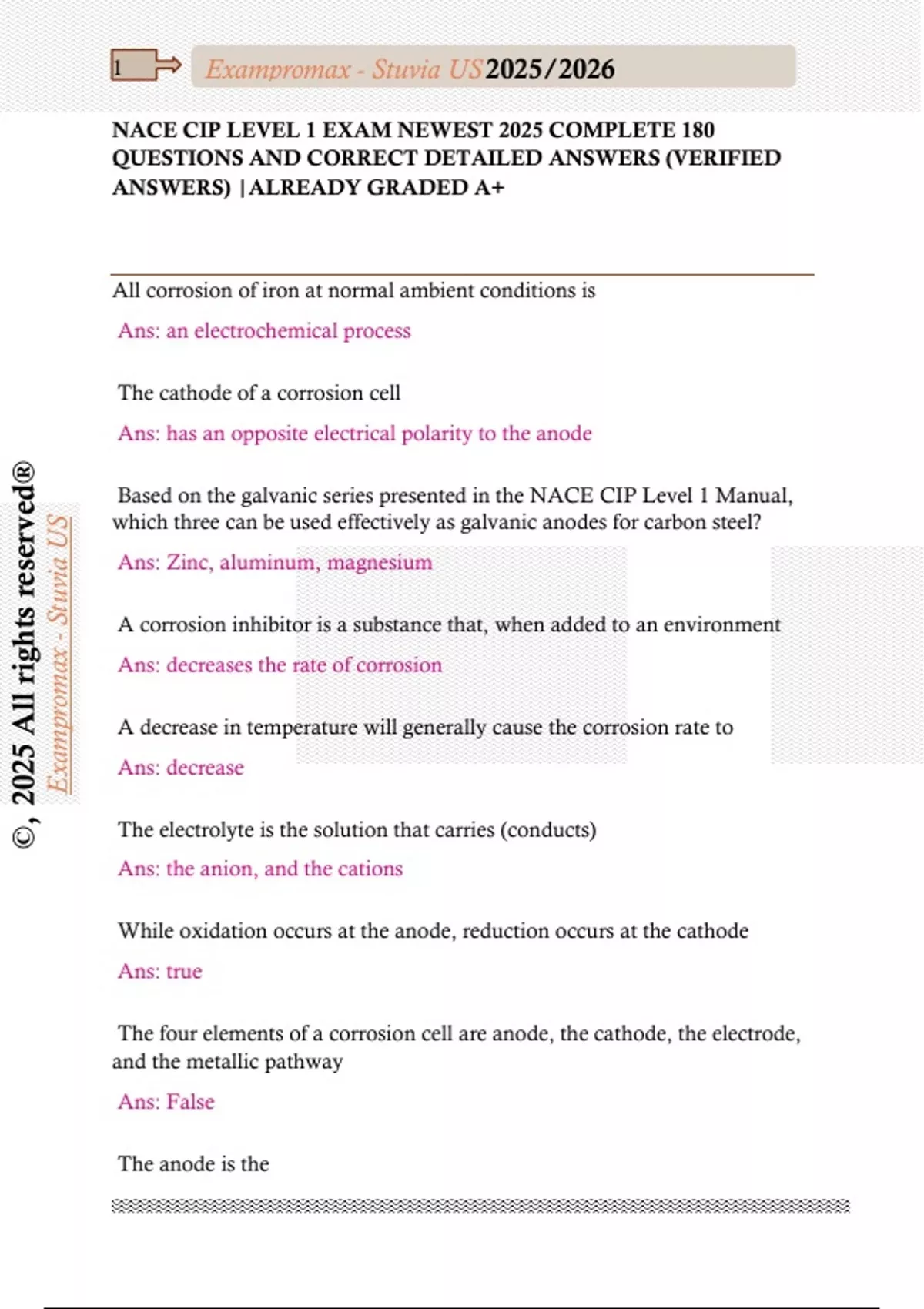 NACE CIP LEVEL 1 EXAM NEWEST 2025 COMPLETE 180 QUESTIONS AND CORRECT DETAILED ANSWERS (VERIFIED ANSWERS) |ALREADY GRADED A+
