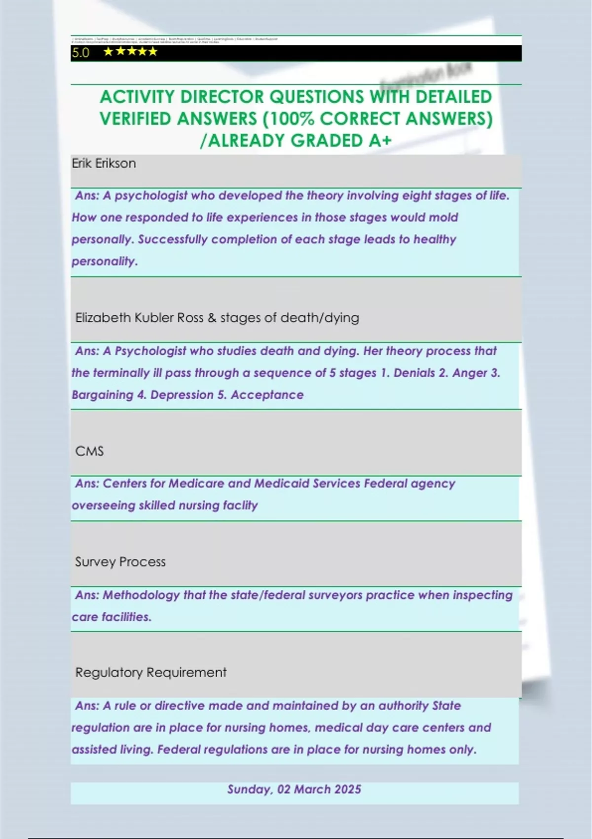ACTIVITY DIRECTOR QUESTIONS WITH DETAILED VERIFIED ANSWERS (100% CORRECT ANSWERS) /ALREADY GRADED A+