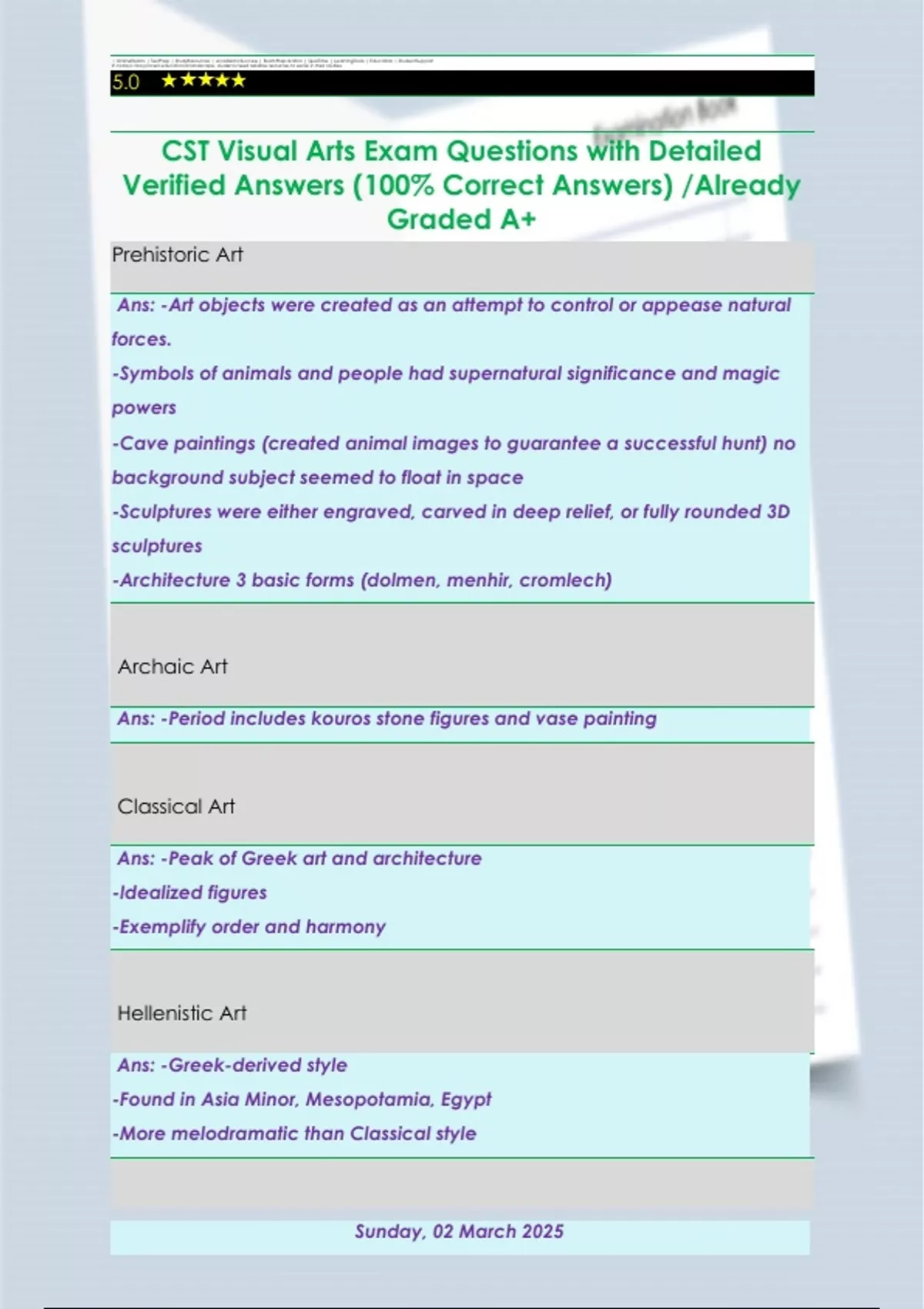 CST Visual Arts Exam Questions with Detailed Verified Answers (100% Correct Answers) /Already Graded A+