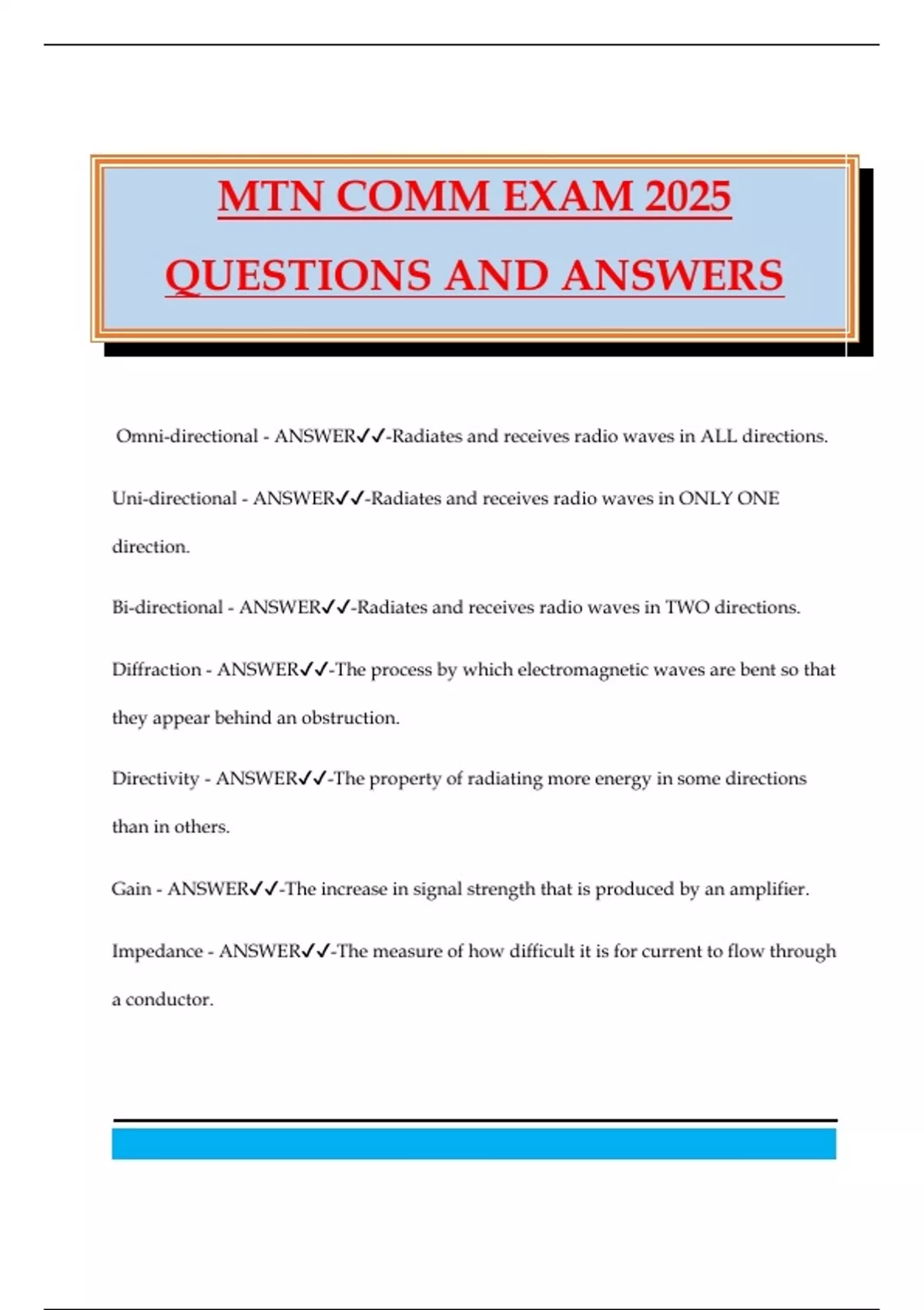 MTN COMM EXAM 2025 QUESTIONS AND ANSWERS