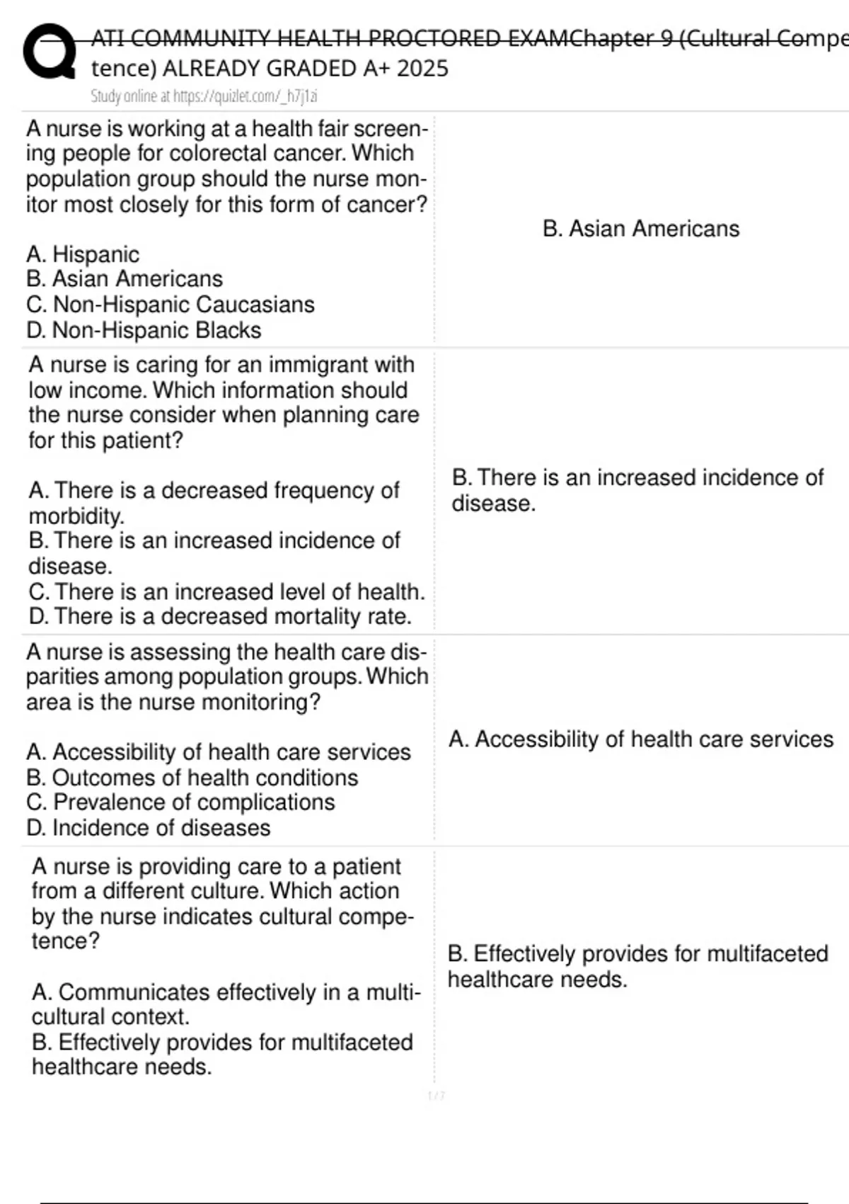 , ATI COMMUNITY HEALTH PROCTORED EXAMChapter 9 (Cultural Compe