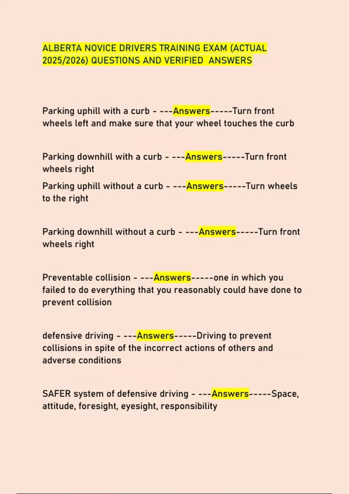 ALBERTA NOVICE DRIVERS TRAINING EXAM (ACTUAL 2025/2026) QUESTIONS AND VERIFIED ANSWERS