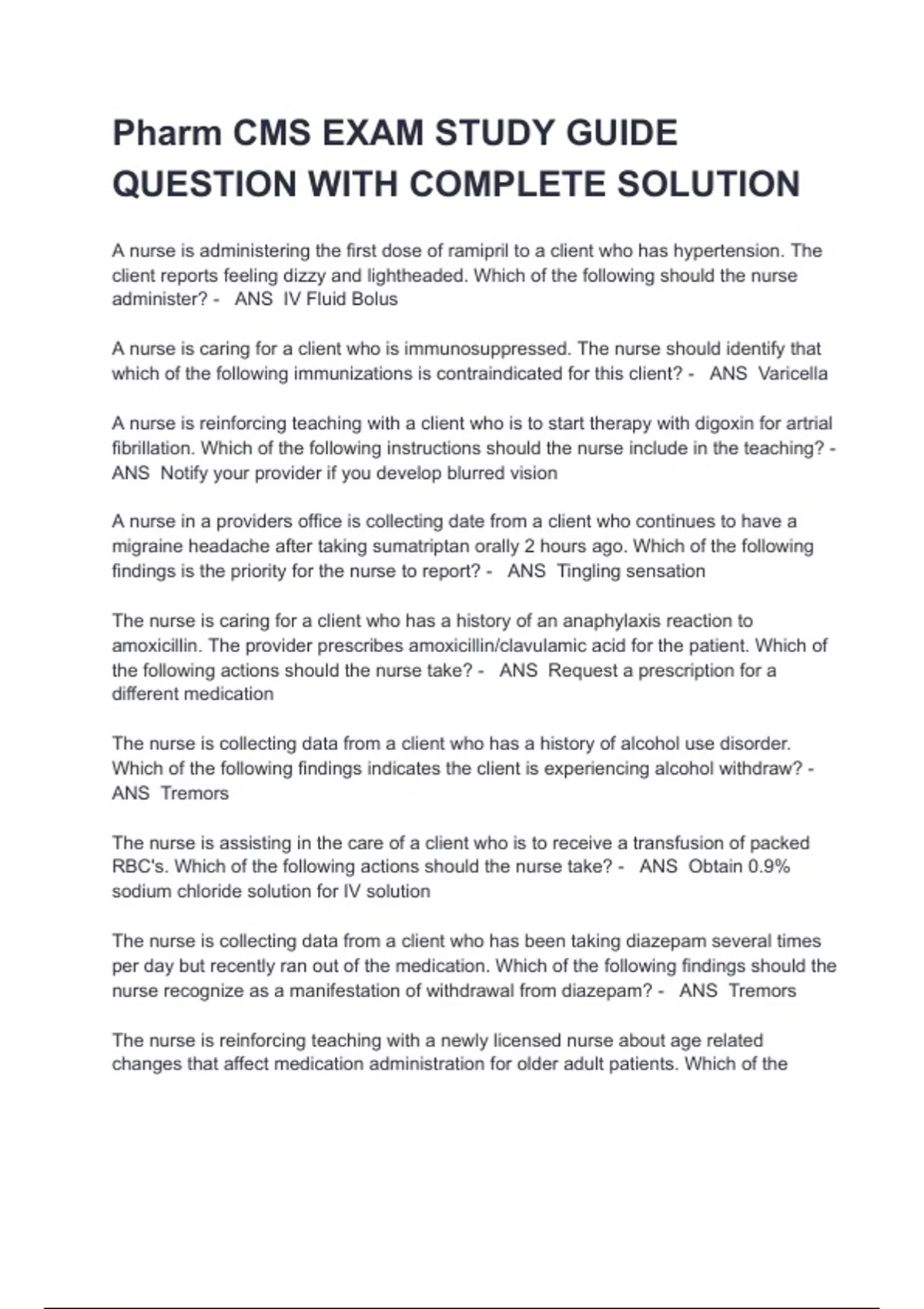 A nurse is administering the first dose of ramipril to a client who has hypertension. The