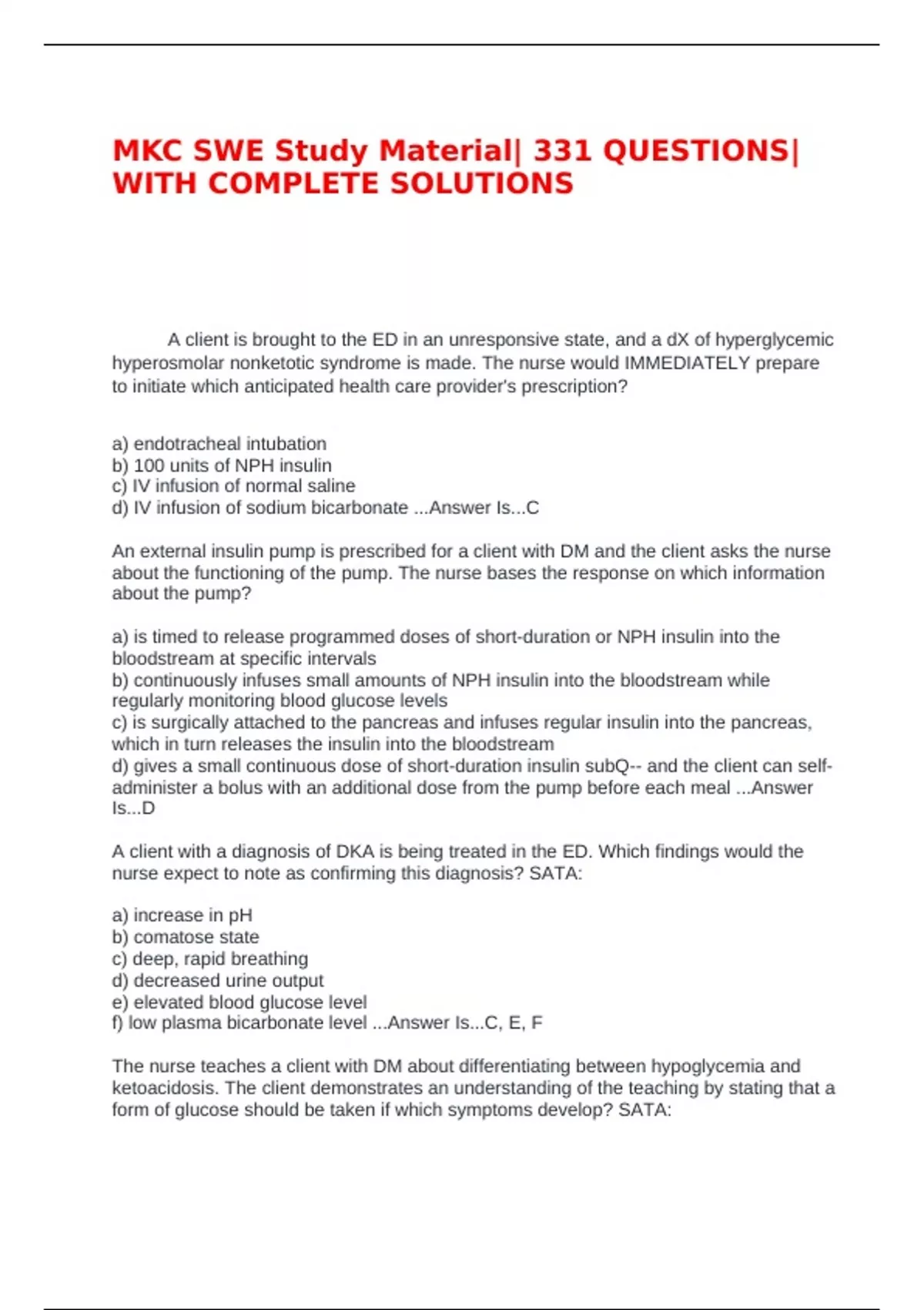 MKC SWE Study Material| 331 QUESTIONS| WITH COMPLETE SOLUTIONS