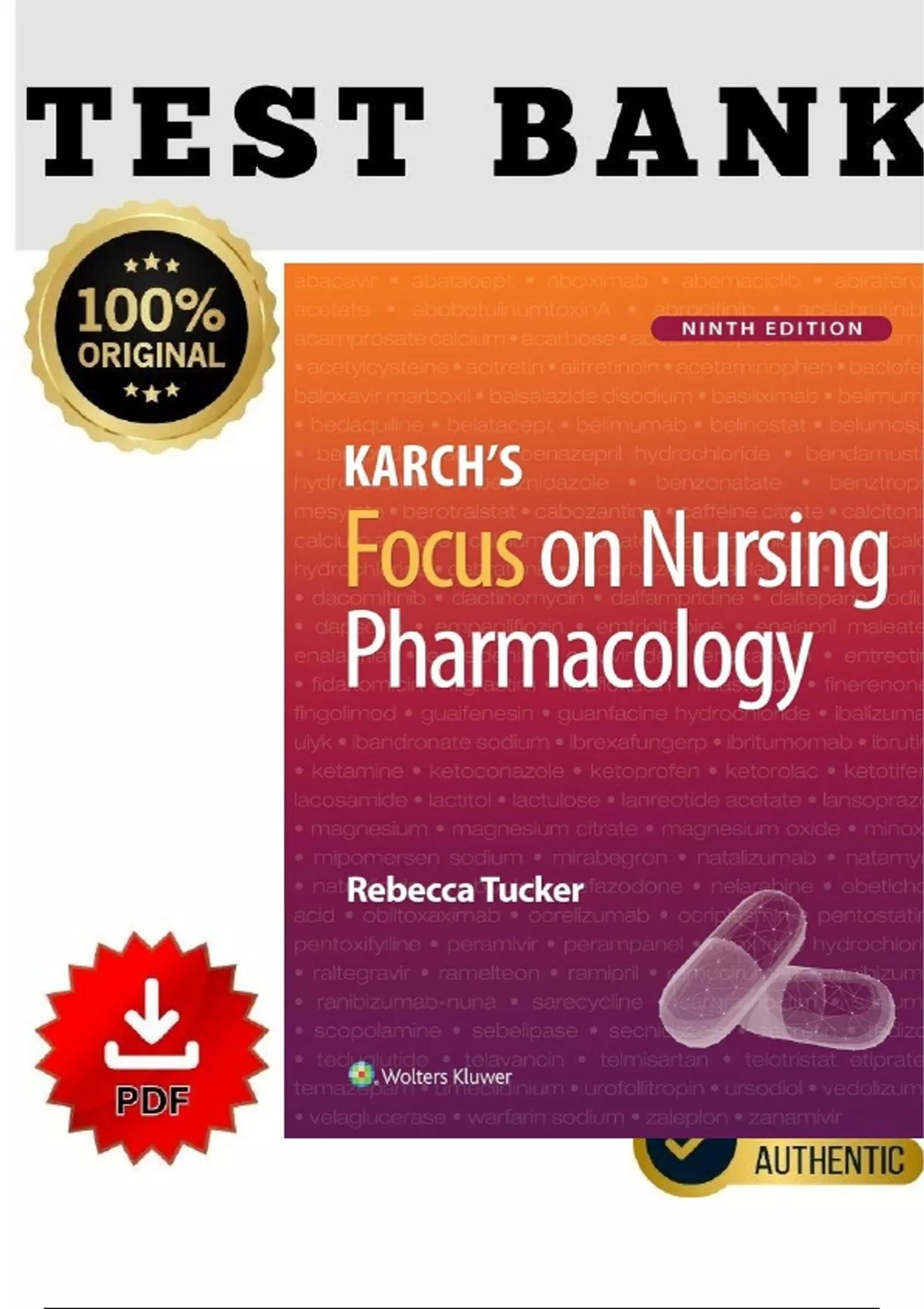 *PDF FILE* Get instant access to a complete and verified test bank for Karch's Focus on Nursing Pharmacology 9th Edition, published in 2025. This comprehensive resource is designed to help nursing students, educators, and professionals prepare for exams and assessments with confidence. **Features:** * Covers all chapters of the 9th edition of Karch's Focus on Nursing Pharmacology * Includes a vast collection of multiple-choice questions, true/false questions, and other question types * Verified answers and rationales to ensure accuracy and clarity * Organized by chapter and topic for easy navigation and review * Ideal for self-study, classroom instruction, or professional development This test bank is an essential resource for anyone looking to succeed in nursing pharmacology. Order now and start achieving your academic and professional goals!