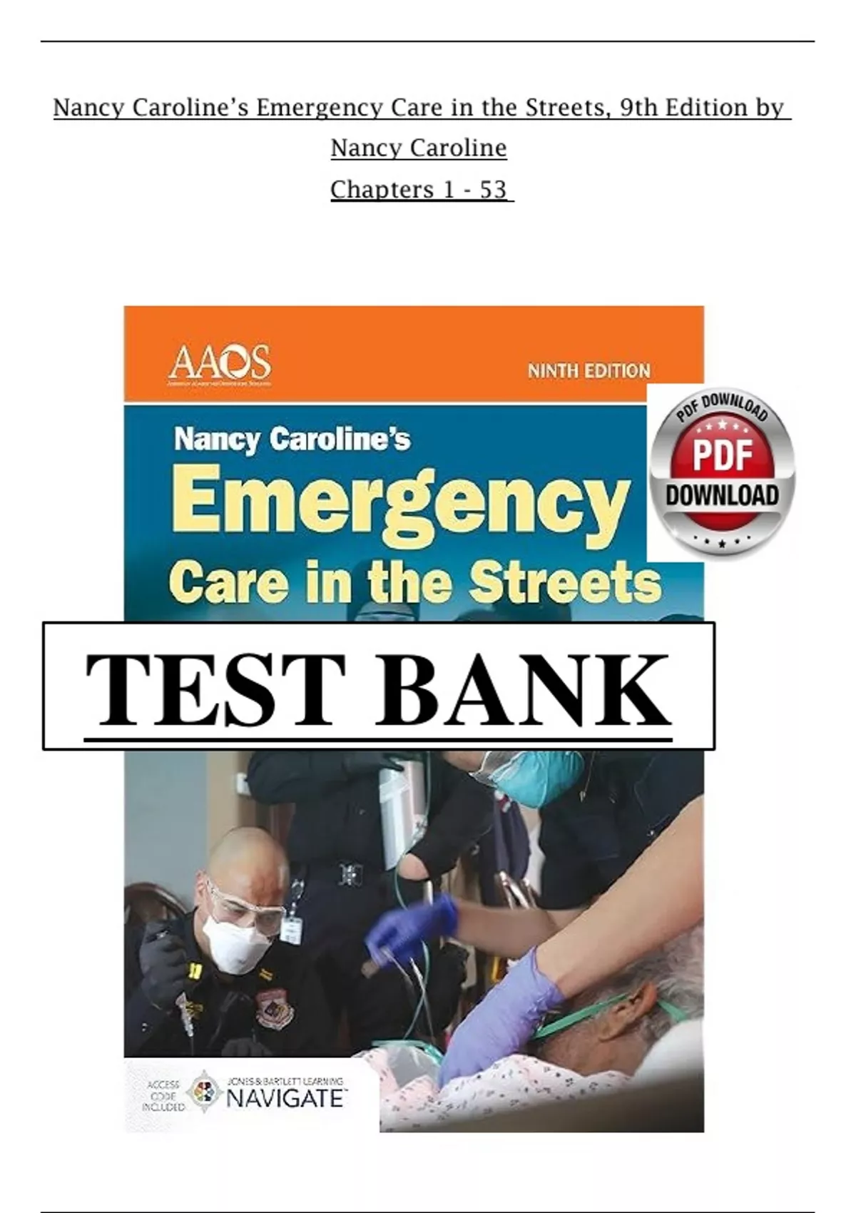 Test Bank For Nancy Caroline’s Emergency Care in the Streets, 9th Edition by Nancy Caroline, All Chapters 1 - 53 LATEST