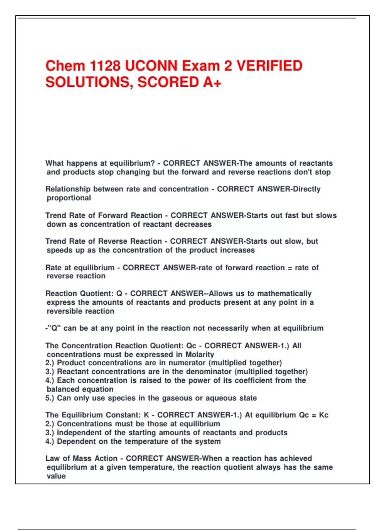 Chem 1128 UCONN Exam 2 VERIFIED SOLUTIONS, SCORED A+.