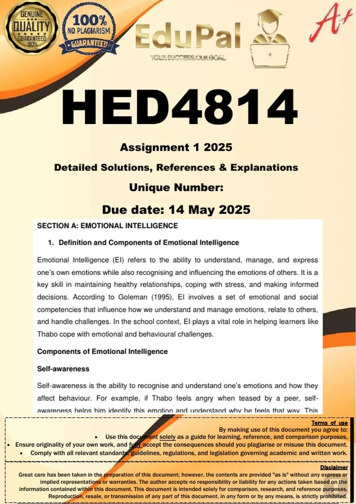 HED4814 Assignment 1 (COMPLETE ANSWERS) 2025 - DUE 14 May 2025; 100% TRUSTED Complete, trusted solutions and explanations. For assistance, Whats-App 0.6.7-1.7.1-1.7.3.9. Ensure your success with us. ...