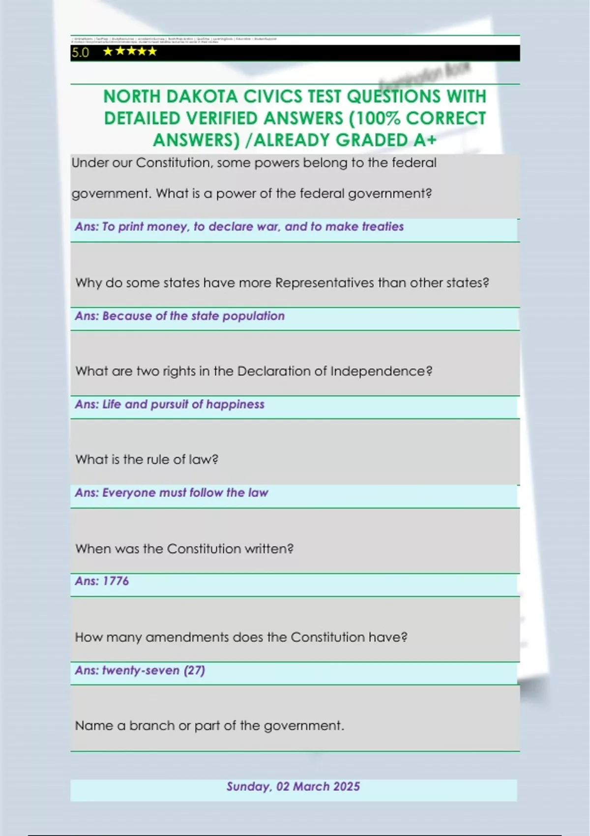 NORTH DAKOTA CIVICS TEST QUESTIONS WITH