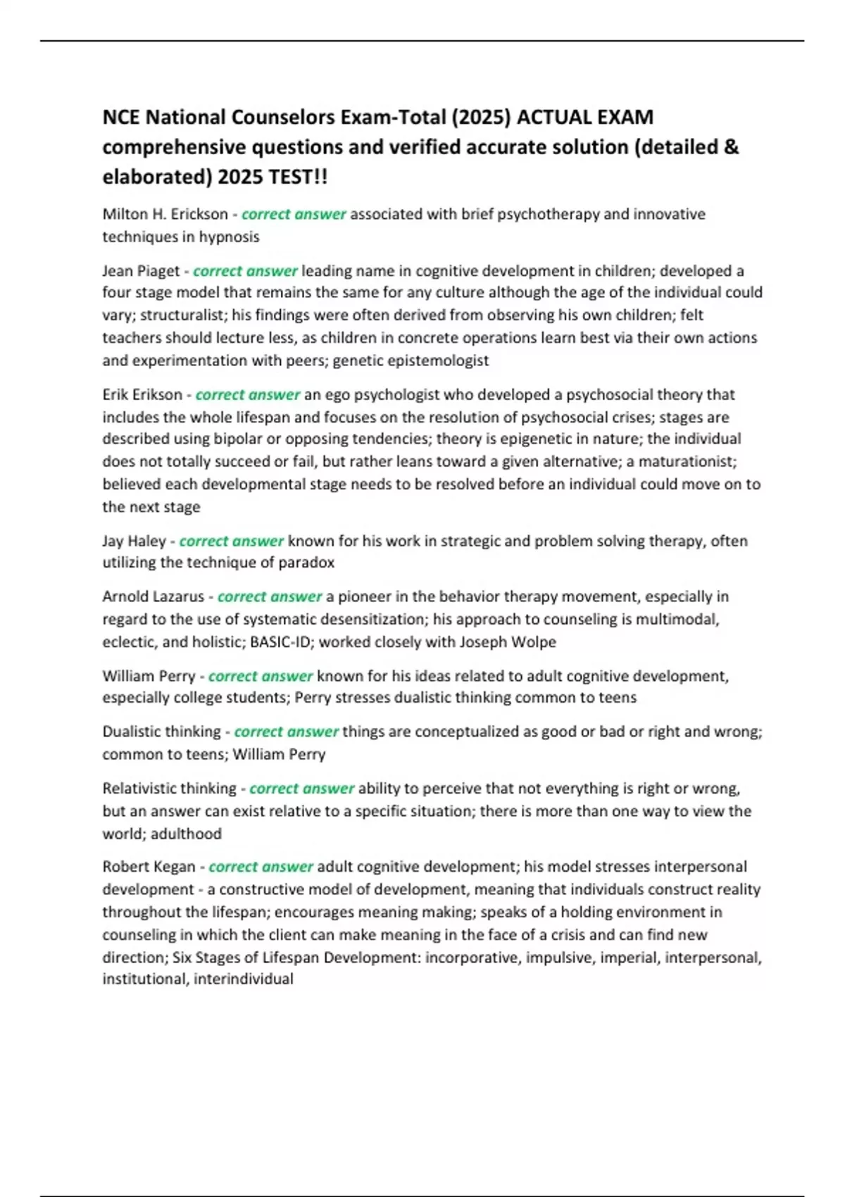 Jay Haley - correct answer known for his work in strategic and problem solving therapy, often