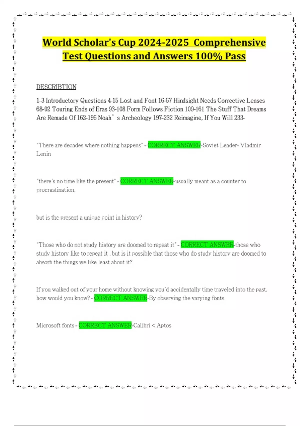 World Scholar's Cup Comprehensive Test Questions and Answers 100% Pass