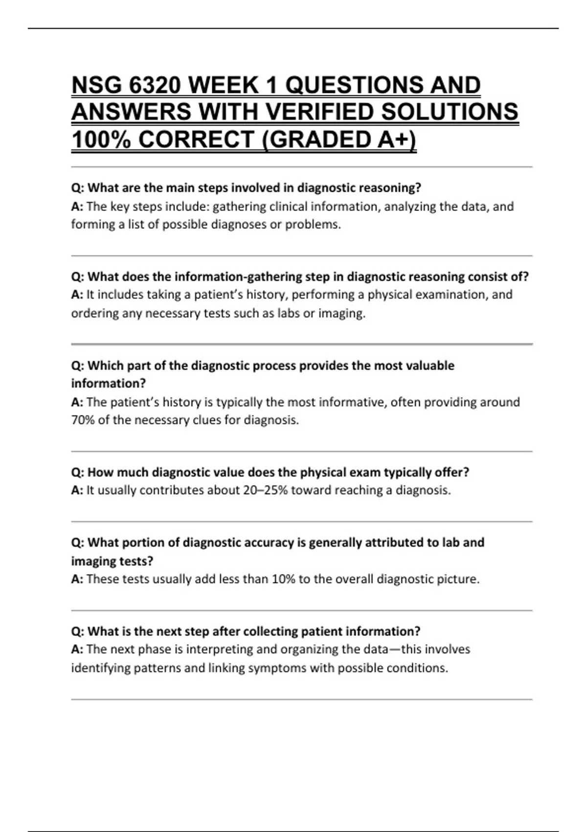 NSG 6320 WEEK 1 QUESTIONS AND ANSWERS WITH VERIFIED SOLUTIONS 100% CORRECT (GRADED A+)