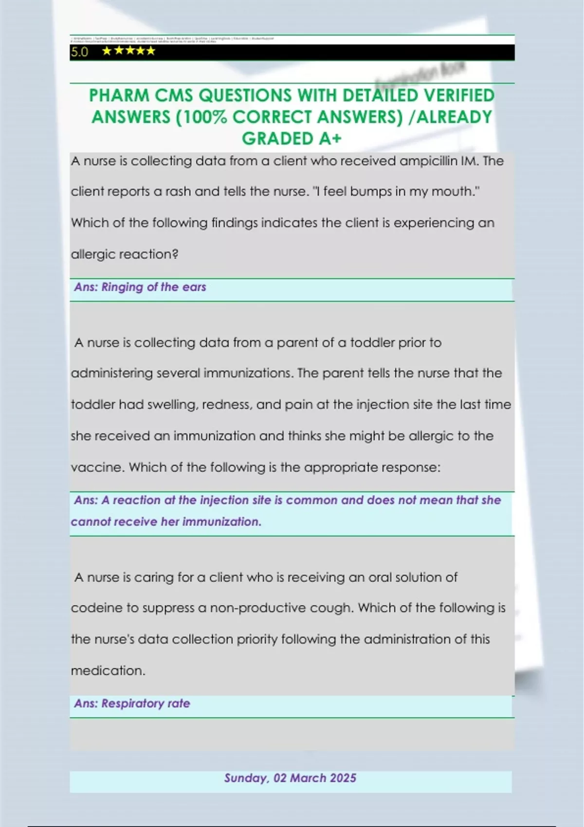 PHARM CMS QUESTIONS WITH DETAILED VERIFIED