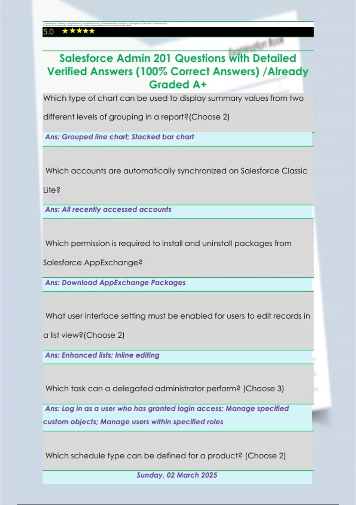Salesforce Admin 201 Questions with Detailed Verified Answers (100% Correct Answers) /Already Graded A+