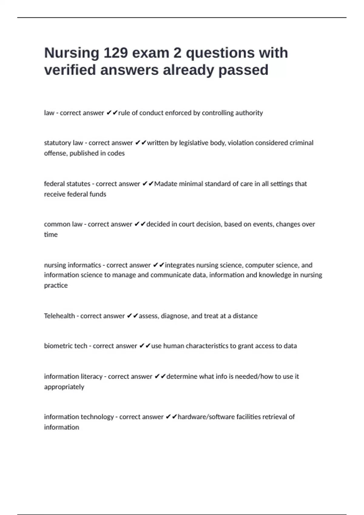 nursing informatics - correct answer ✔✔integrates nursing science, computer science, and