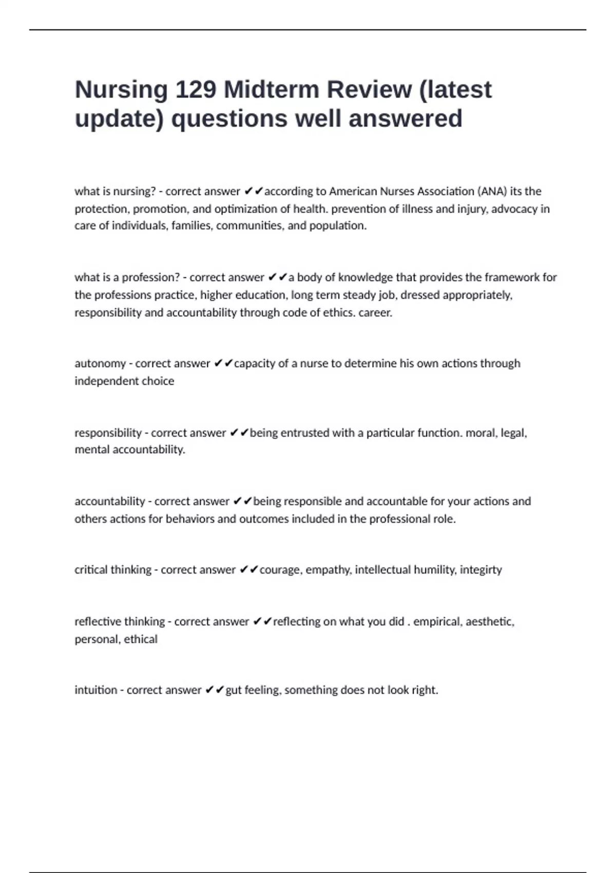 what is nursing? - correct answer ✔✔according to American Nurses Association (ANA) its the