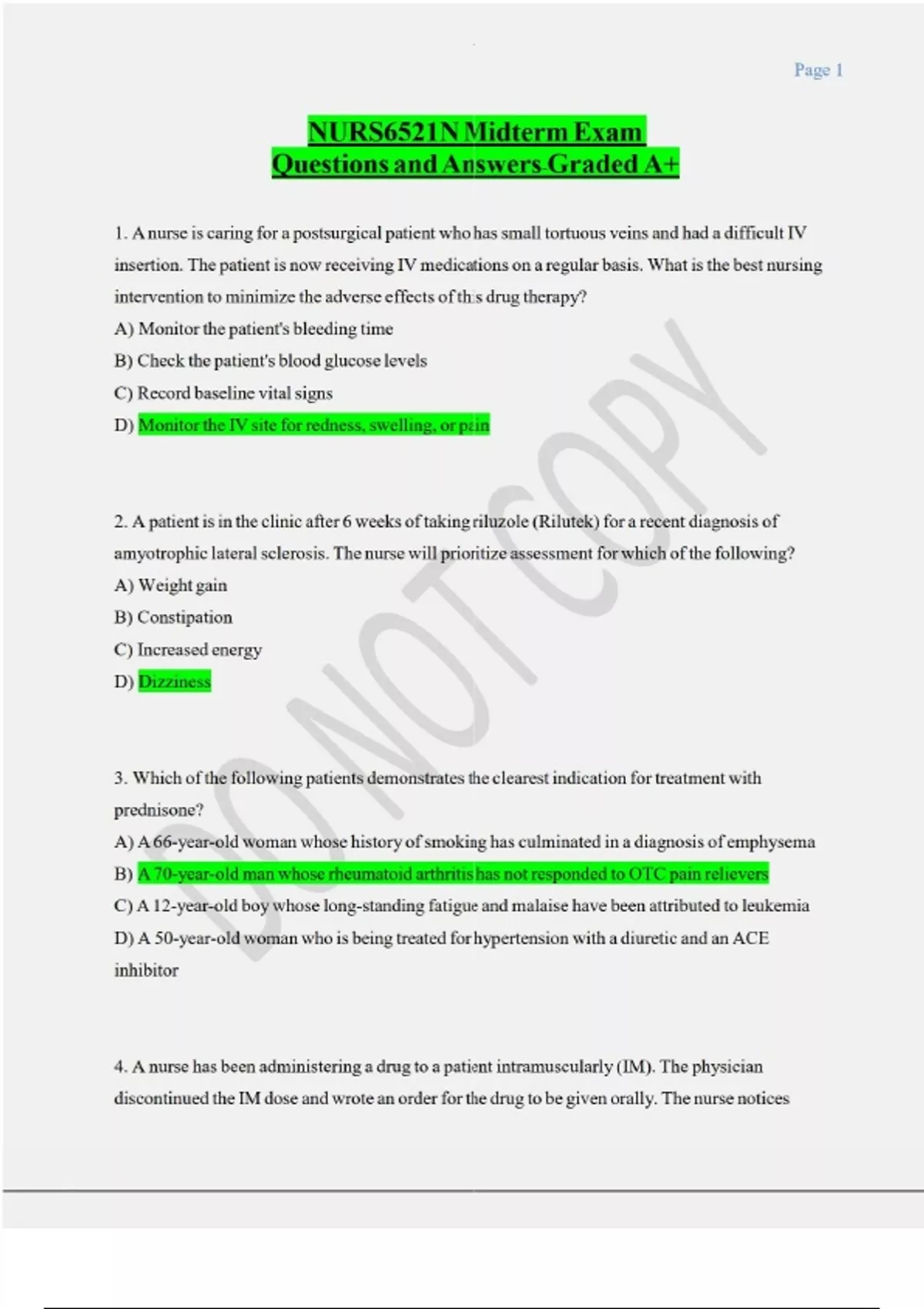 NURS6521N Midterm Exam Questions and Answers-Graded A+