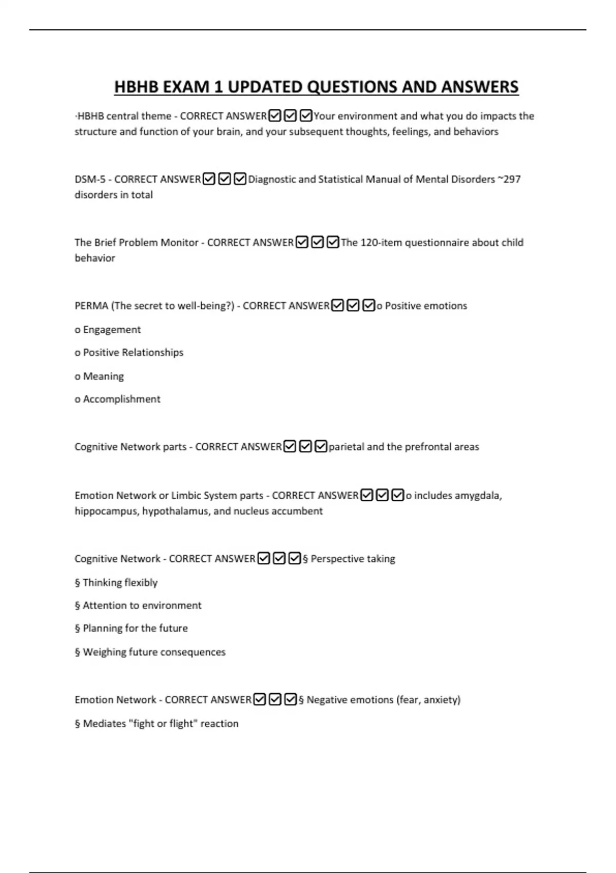 HBHB EXAM 1 UPDATED QUESTIONS AND ANSWERS