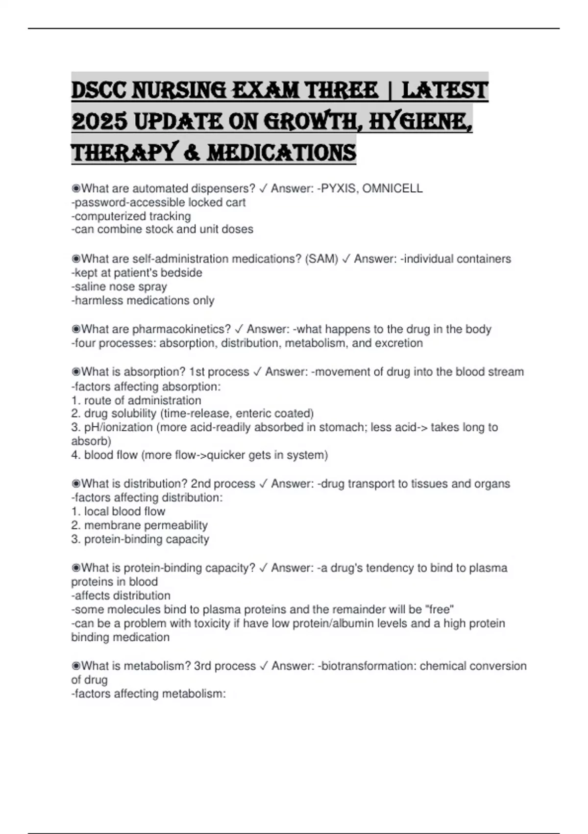 ◉What is distribution? 2nd process ✓ Answer: -drug transport to tissues and organs
