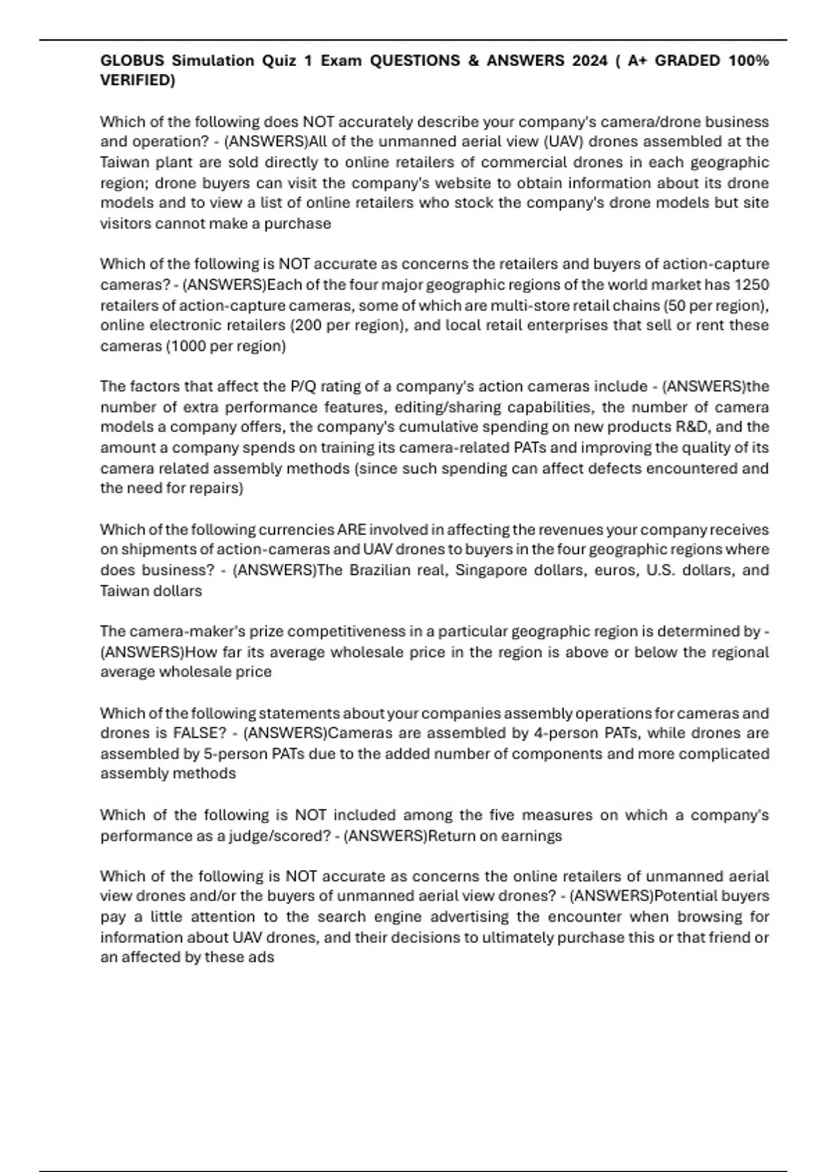 GLOBUS Simulation Quiz 1 Exam QUESTIONS & ANSWERS 2024 ( A+ GRADED 100%