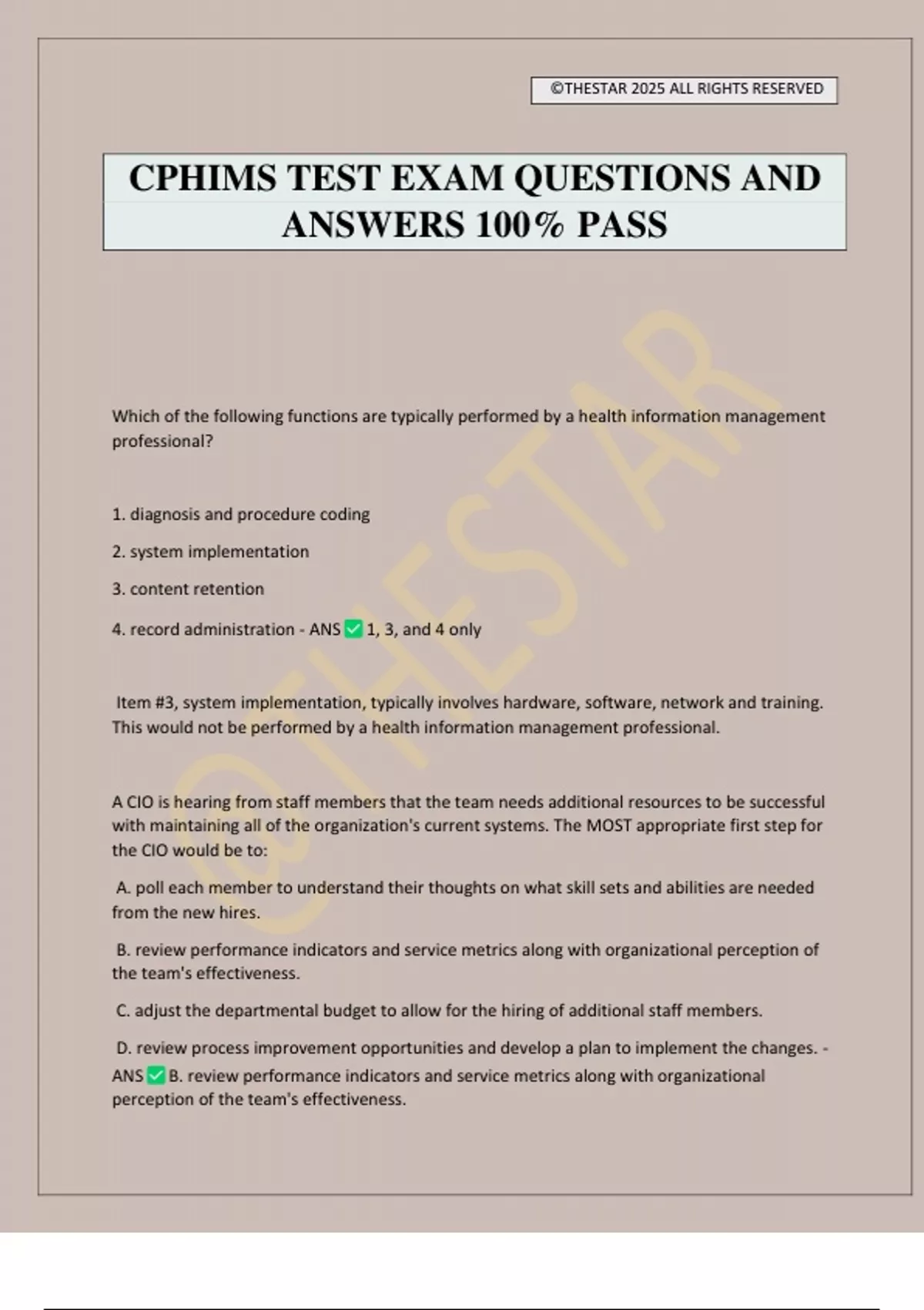 CPHIMS TEST EXAM QUESTIONS AND