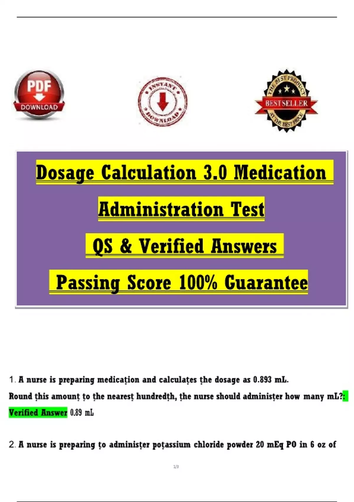 Dosage Calculation 3.0 Medication Admin...nswers Passing Score 100 Guarantee Dosage Calculation 3.0 Medication Admin...nswers Passing Score 100 Guarantee
