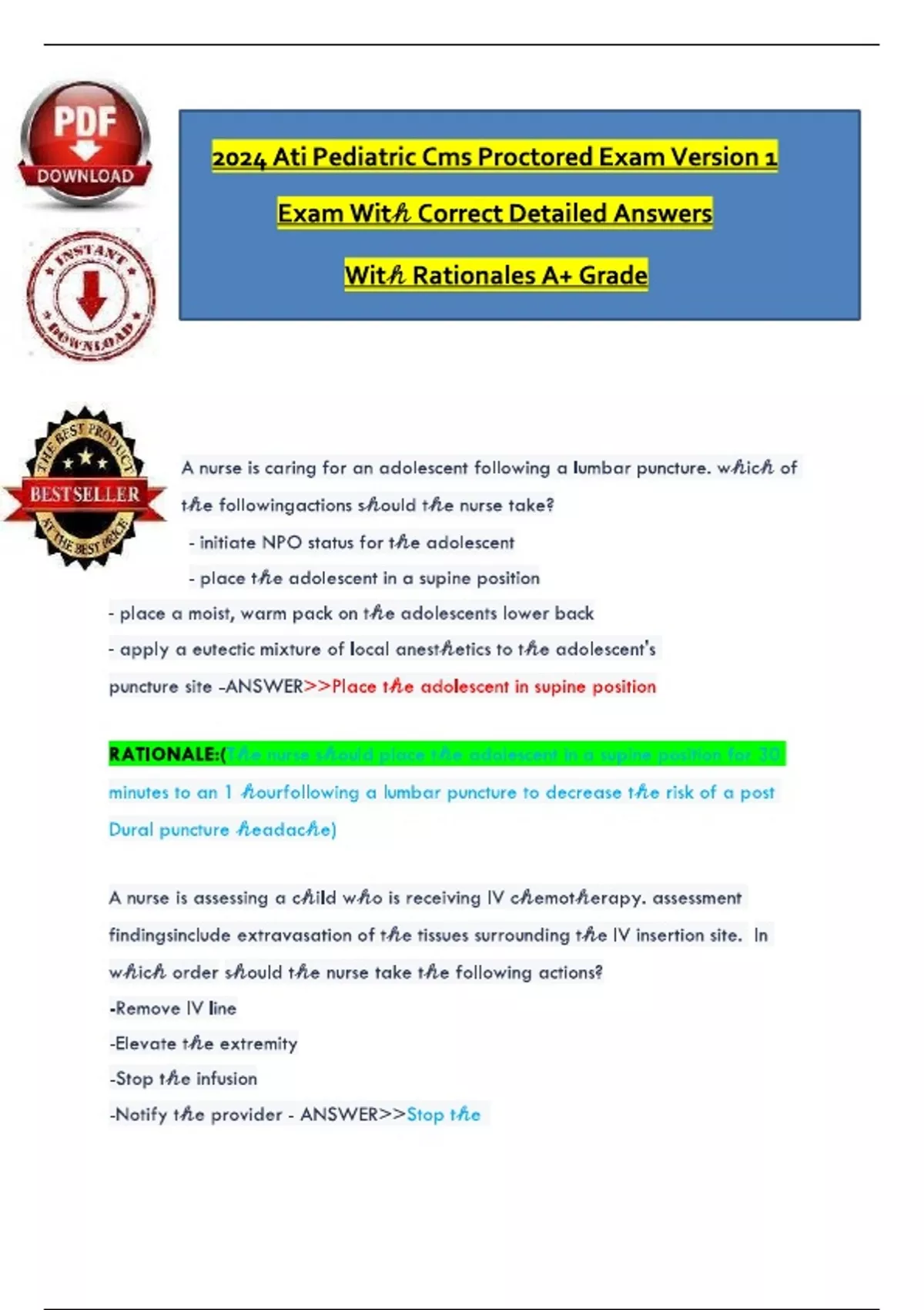 2024 Ati Pediatric Cms Proctored Exam V...d Answers With Rationales A+ Grade 2024 Ati Pediatric Cms Proctored Exam V...d Answers With Rationales A+ Grade