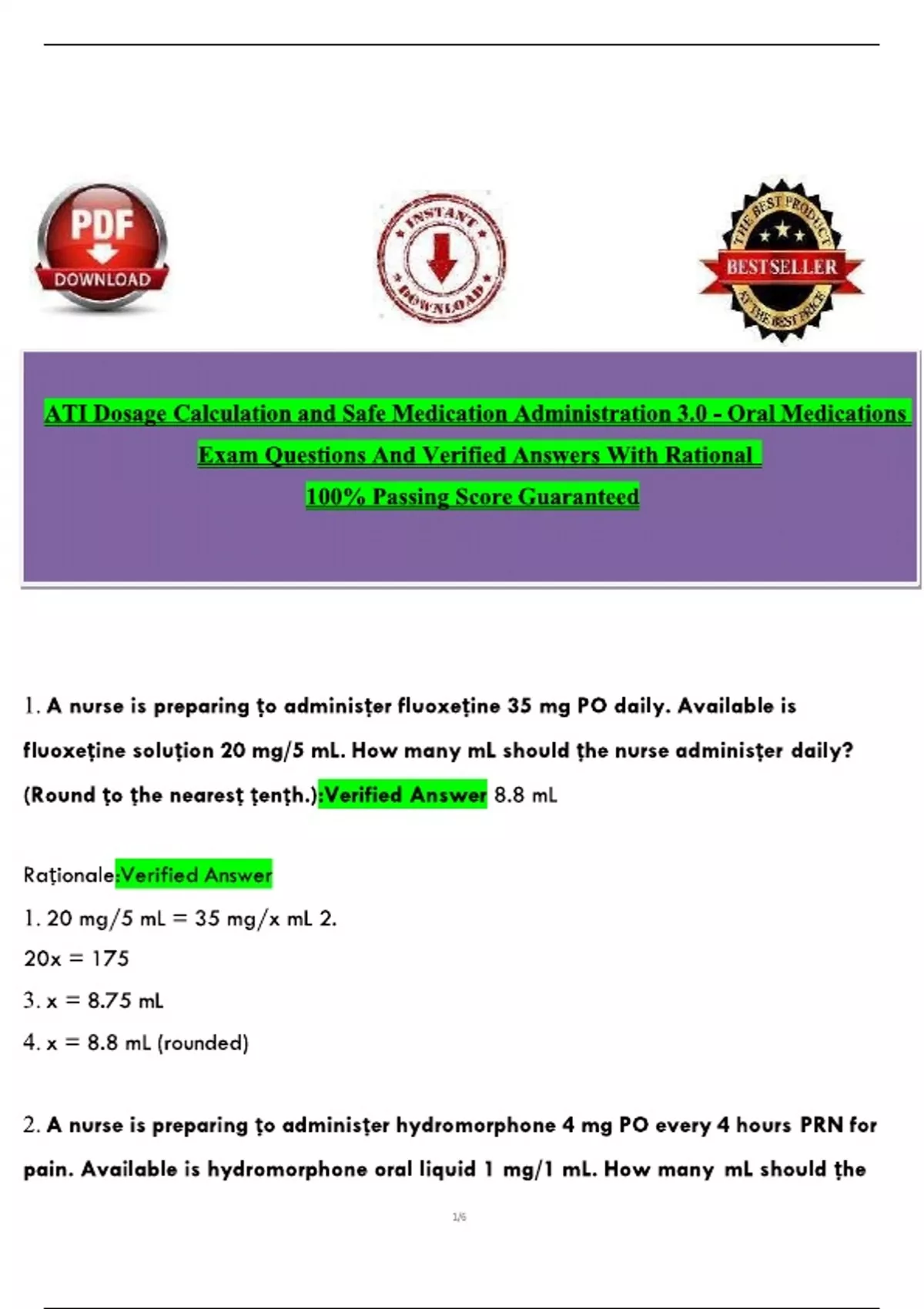 ATI Dosage Calculation and Safe Medicat...ional 100 Passing Score Guaranteed