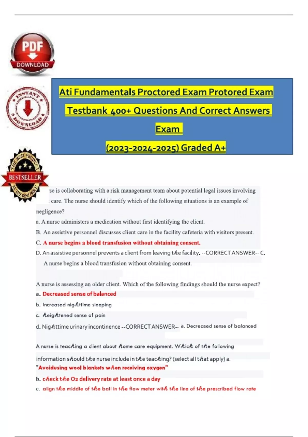 Ati Fundamentals Proctored Exam Protore...rs Exam () Graded A+