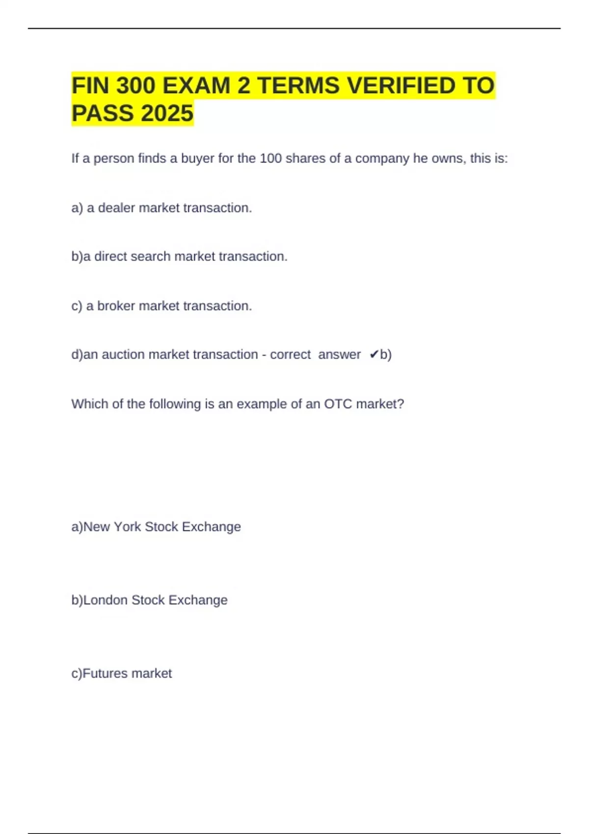 d)an auction market transaction - correct answer ✔b)