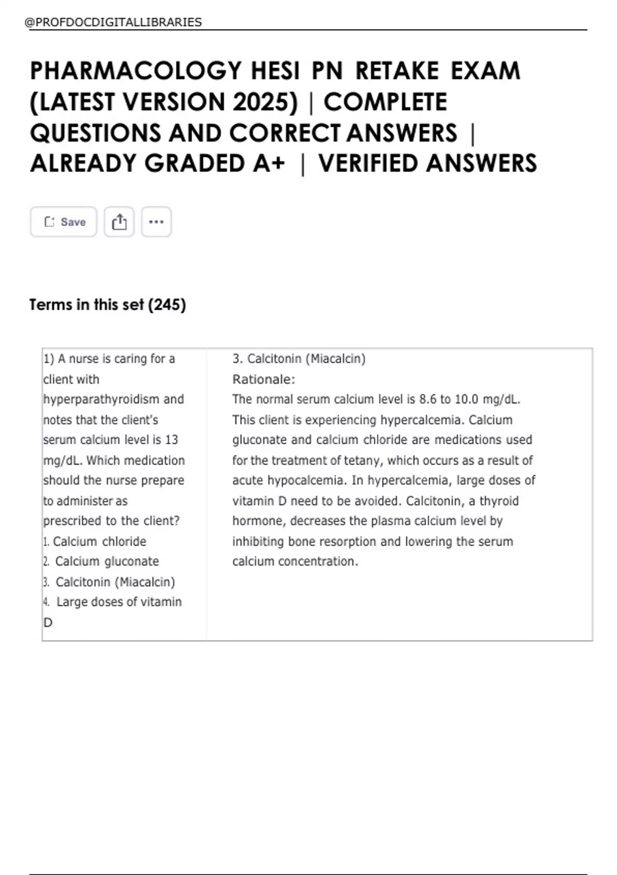 1) A nurse is caring for a 3. Calcitonin (Miacalcin)