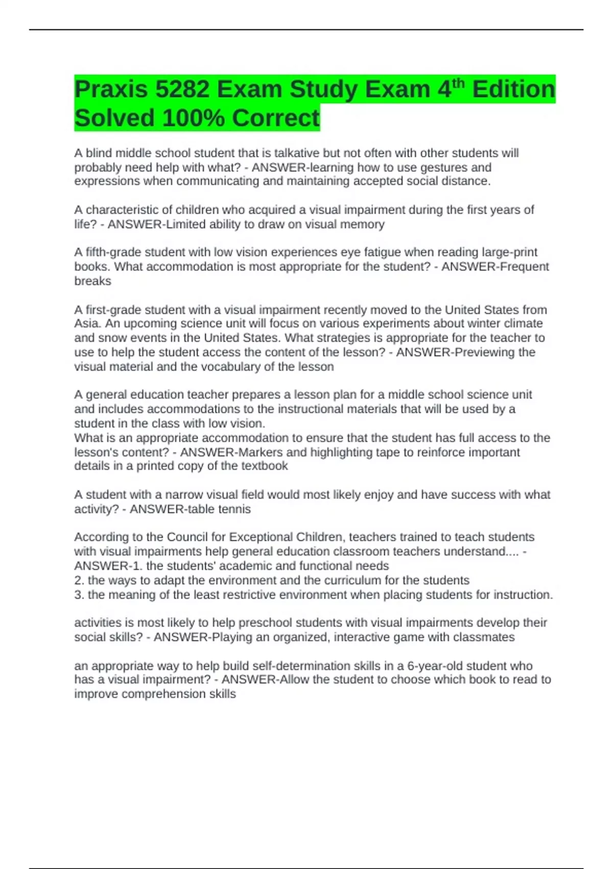 Praxis 5282 Exam Study Exam 4th Edition Solved 100% Correct