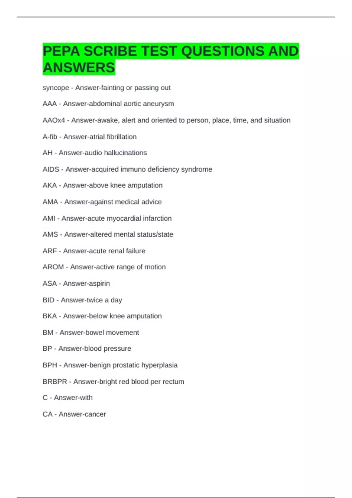 PEPA SCRIBE TEST QUESTIONS AND ANSWERS