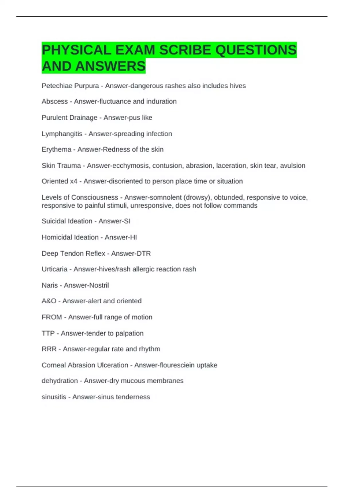 PHYSICAL EXAM SCRIBE QUESTIONS AND ANSWERS