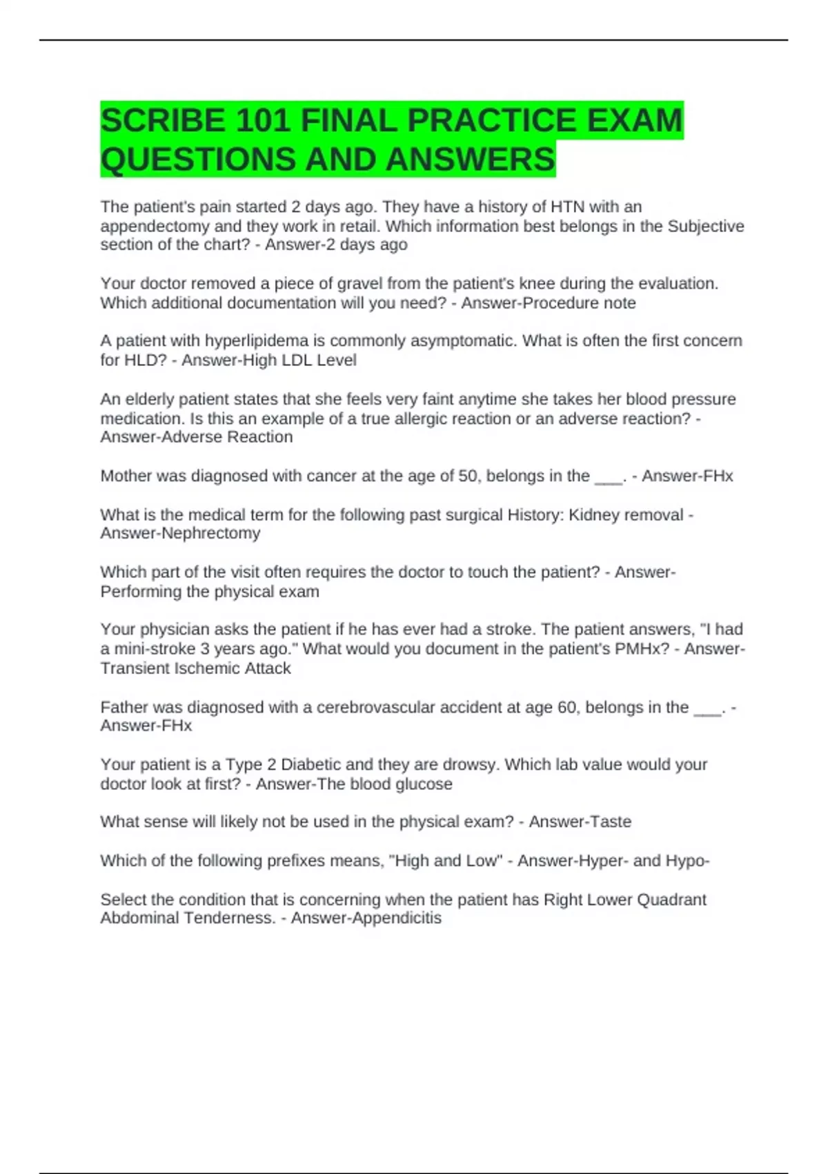 SCRIBE 101 FINAL PRACTICE EXAM QUESTIONS AND ANSWERS