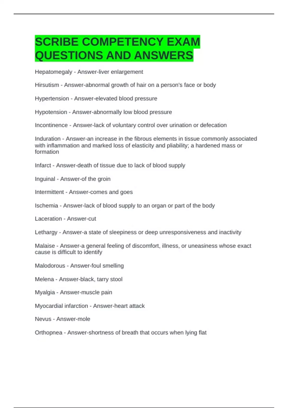 SCRIBE COMPETENCY EXAM QUESTIONS AND ANSWERS