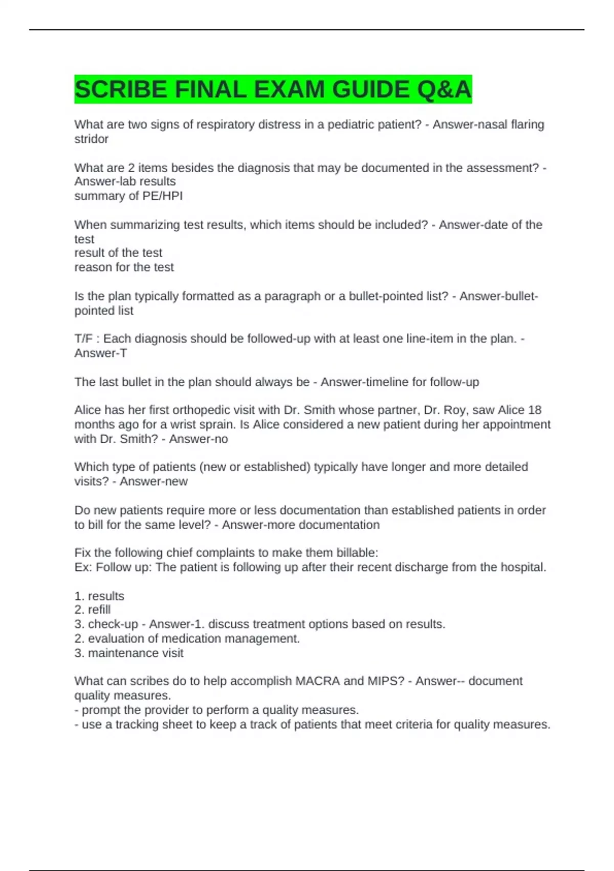 SCRIBE FINAL EXAM GUIDE Q&A
