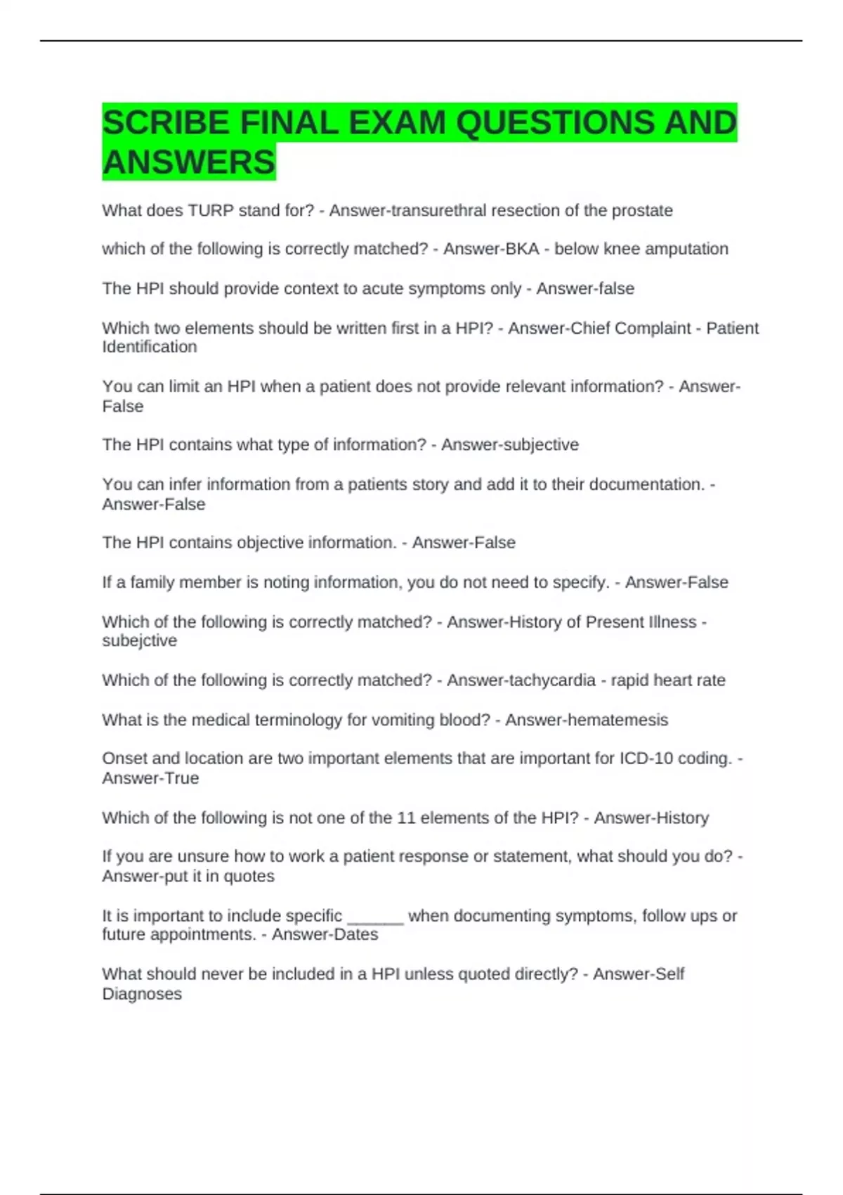 SCRIBE FINAL EXAM QUESTIONS AND ANSWERS