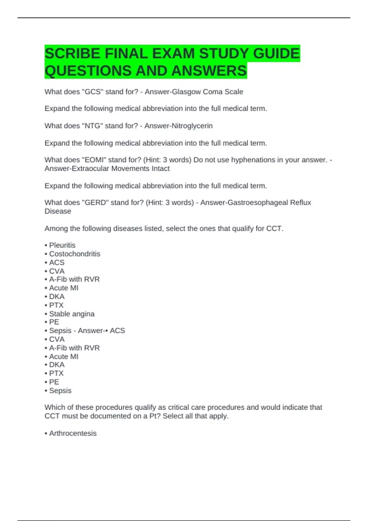 SCRIBE FINAL EXAM STUDY GUIDE QUESTIONS AND ANSWERS