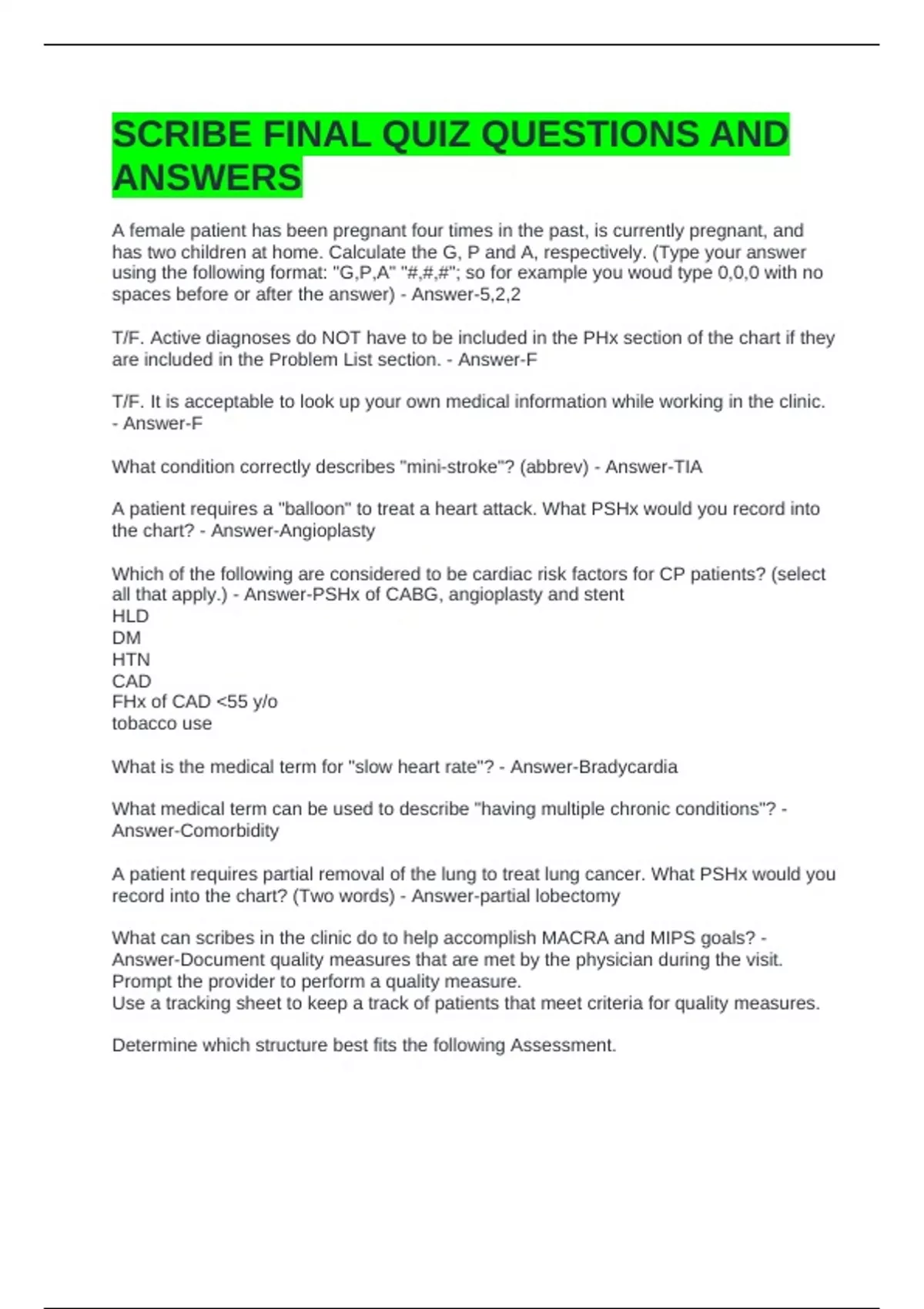 SCRIBE FINAL QUIZ QUESTIONS AND ANSWERS