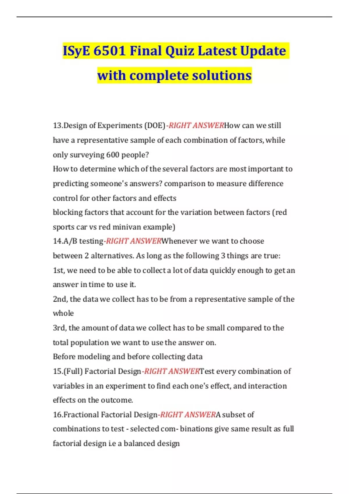 ISyE 6501 Final Quiz Latest Update with complete solutions