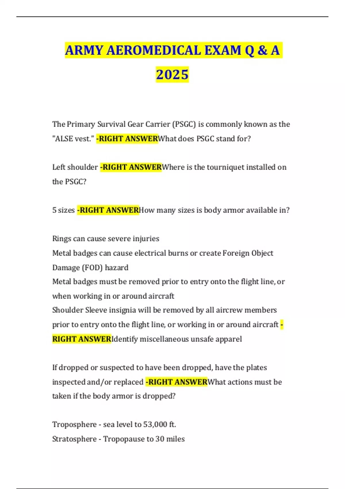 ARMY AEROMEDICAL EXAM Q & A 2025