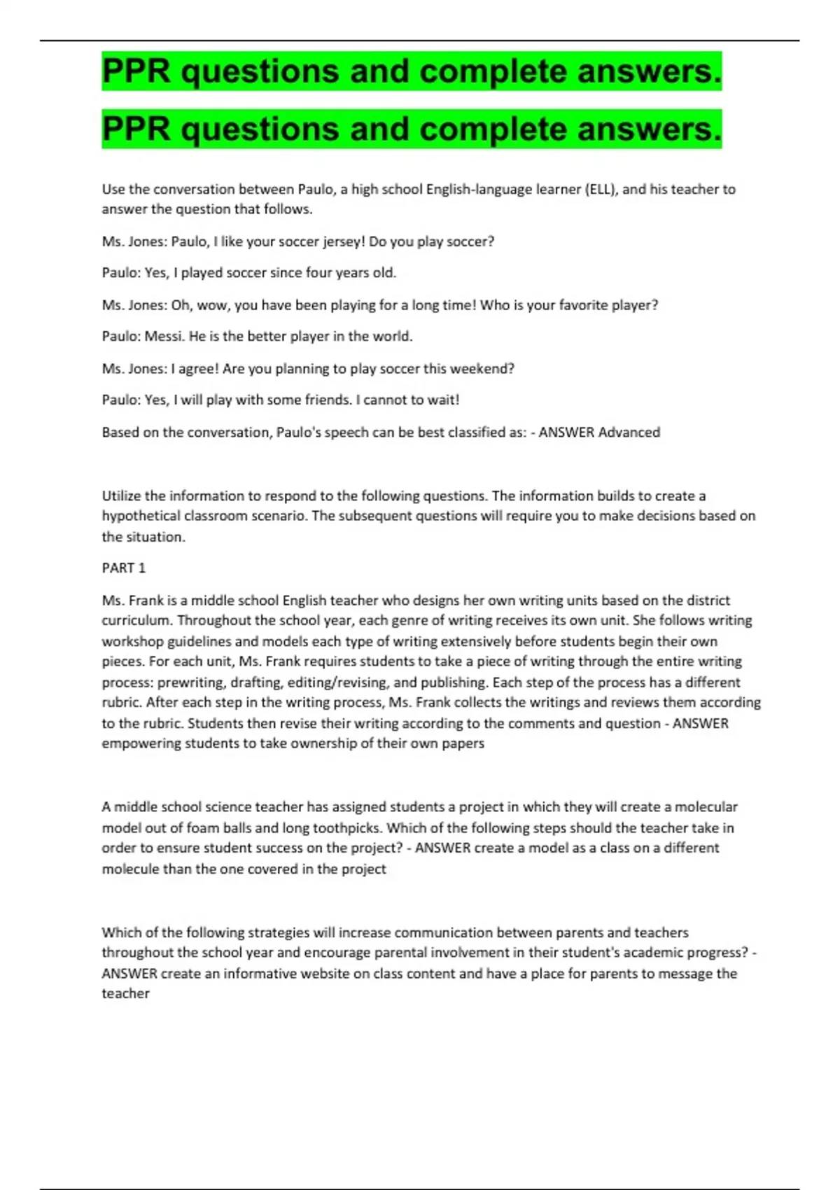 PPR questions and complete answers PPR questions and complete answers PPR questions and complete answers PPR questions and complete answers PPR questions and complete answers