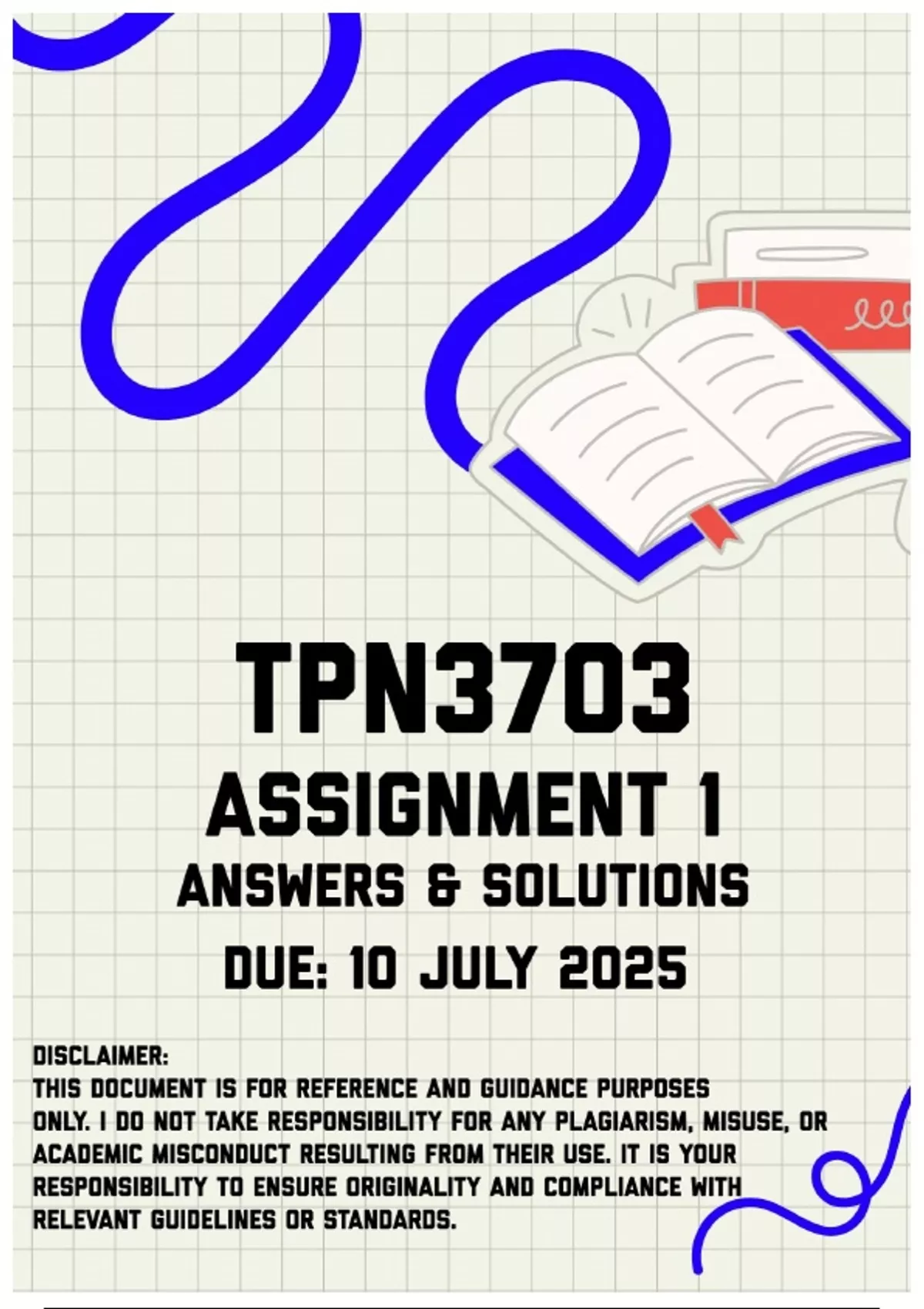 TPN3703 Assignment 1 Memo | Due 10 July 2025. 2 Essays provided for each question. This document contains a fully answered assignment with complete answers to all questions and tasks. Every section is carefully completed to ensure a guaranteed pass. Perfect for guaranteed pass, high marks, and peace of mind.